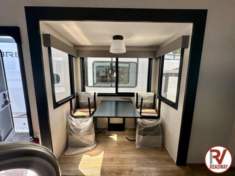 You will experience luxurious camping trips at an affordable price with any one of these Forest River Sabre fifth wheels! These models are durable and ready to travel anytime of the year thanks to features like the high-gloss gel-coat front cap with LED lighting, the PVC roof membrane, and the forced air underbelly with enclosed gate valves. The electric auto-leveling system makes setting up easy and safe, and the adjustable power awning with LED lighting will create an inviting outdoor living space. Each model includes a universal docking station which includes a black tank flush and an outside shower, and detachable and adjustable stable steps for you to enter and exit the unit safely. Inside, you will love the design of the ambient accent lighting in the living area, the real wood lumbercore cabinetry, and the linoleum flooring!