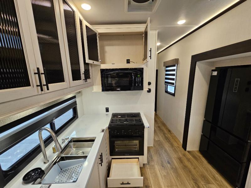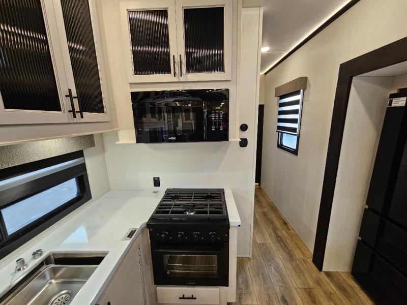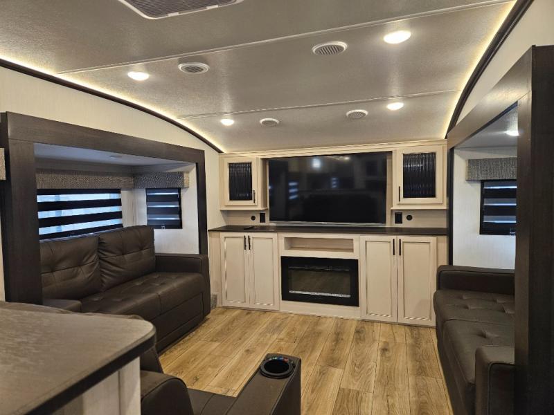 Front living entertainment, chef’s kitchen with island, king suite retreat, and all-season design—luxury ready for the road!