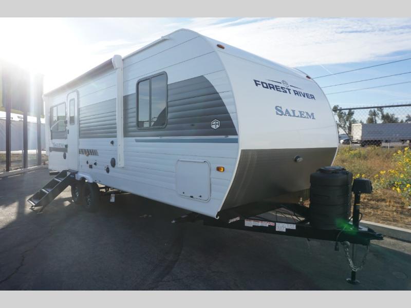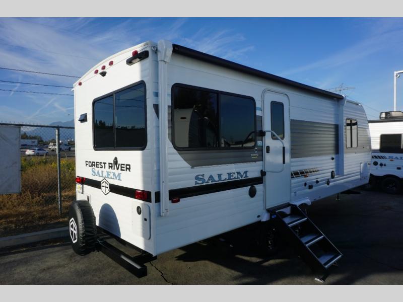 Enjoy years and years of memories with any one of these Forest River Salem travel trailers! They are built with a Dicor PVC roof membrane, a powder coated I-beam frame, and an aerodynamic front radius profile for an easier tow. The triple seal slide out system prevents water from seeping inside and keeps it outside where it belongs. The Best In Class Value Package includes upgraded designer furniture, seamless countertops with no T-mold, and two zone residential soundbars with FM, Bluetooth, HDMI and USB. You will also appreciate the heated and enclosed Accessi-Belly with removable underbelly panels, the power tongue jack with an LED light, and the designated CPAP storage. Some new upgraded features include: a Versa-Tilt bed, a 60K tankless water heater, upgraded showerhead, and so much more!