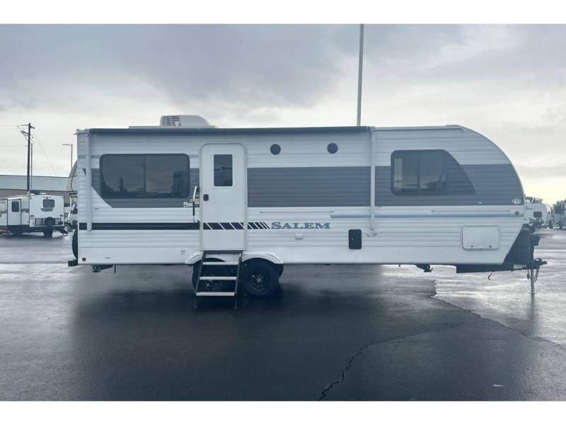 The Salem travel trailers are packed with hassle-free camping amenities! There are a variety of floorplans to choose from between three different regions. The heated and enclosed Accessibelly will help protect against the elements and debris during transport, and the exterior retro/metal redesign is sure to be eye-catching! There are stylish roller shades inside, along with updated backsplash, elegant curtain rods and curtains, plus many more interior comforts! Choose a Salem travel trailer today for quality and value!