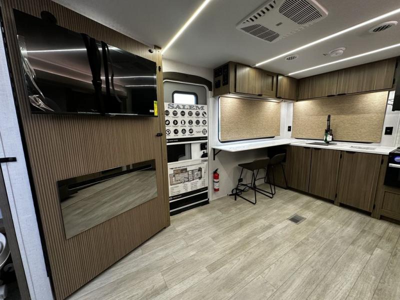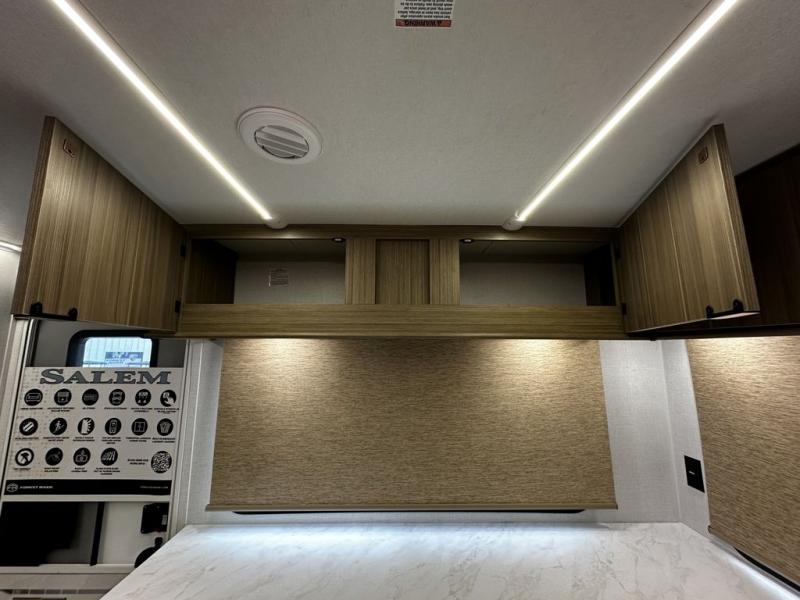 The Salem travel trailers are packed with hassle-free camping amenities! There are a variety of floorplans to choose from between three different regions. The heated and enclosed Accessibelly will help protect against the elements and debris during transport, and the exterior retro/metal redesign is sure to be eye-catching! There are stylish roller shades inside, along with updated backsplash, elegant curtain rods and curtains, plus many more interior comforts! Choose a Salem travel trailer today for quality and value!