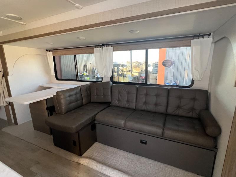 As you get away for the weekend to enjoy nature's beauty, you'll be so glad that you chose to bring this Salem travel trailer along! The full kitchen with its three-burner cooktop and walk-in pantry will allow you to prep meals whenever it is convenient for you, and the large slide that contains the extremely functional Versa Lounge will deliver extra space to the interior so that you don't feel cramped. Your kids will be able to invite a friend or two because of the double-size bunks that are in the back, and since these bunks are right next to the full bathroom with a walk-in shower, your kids won't have to search far in the middle of the night.