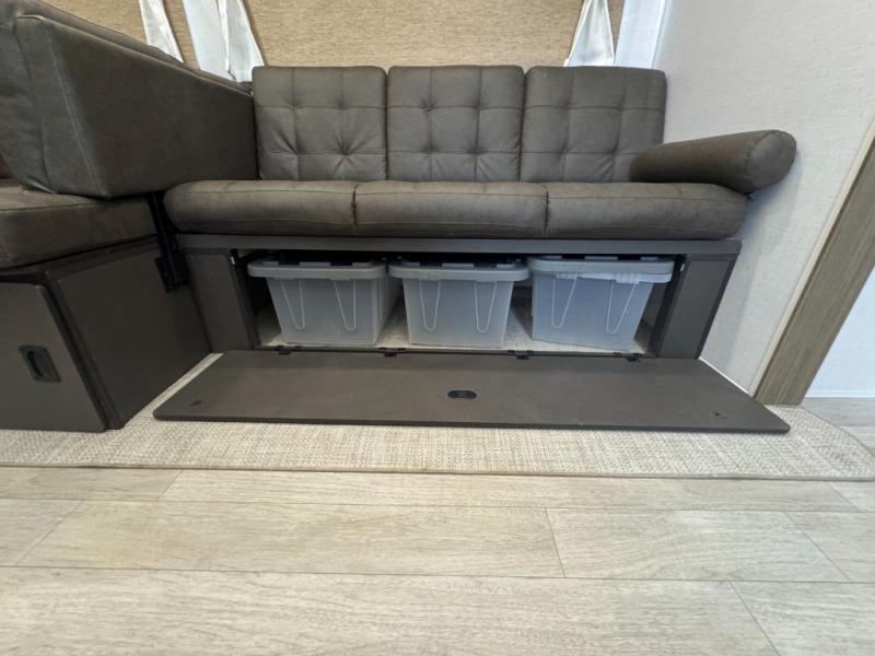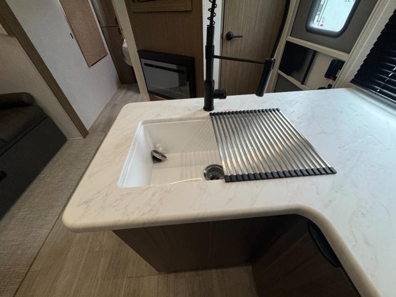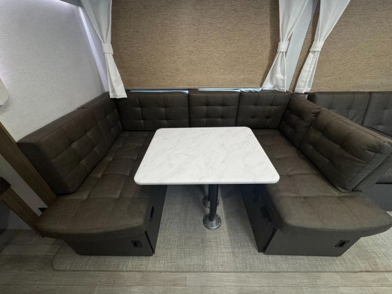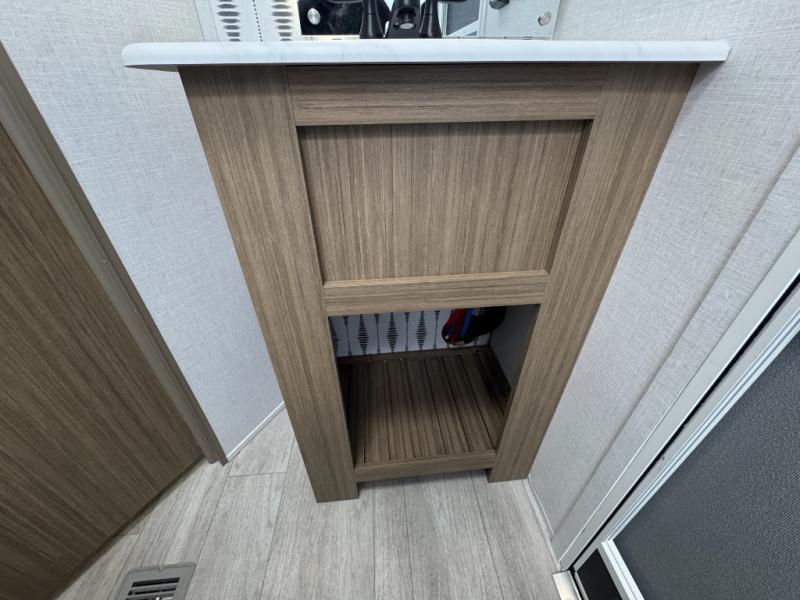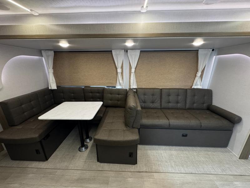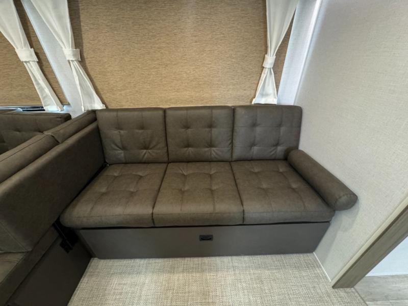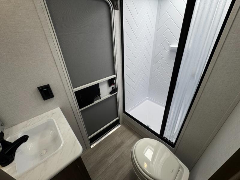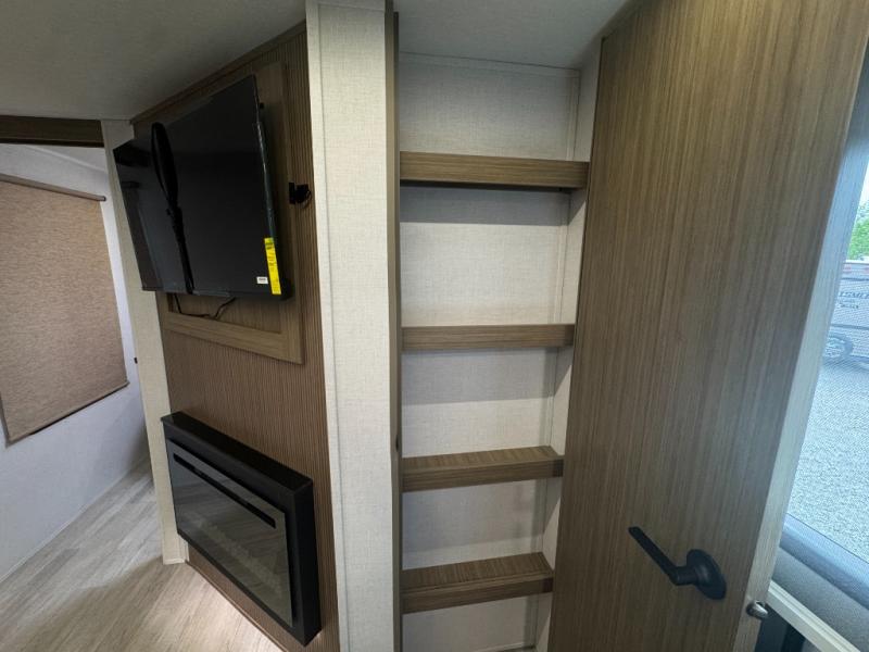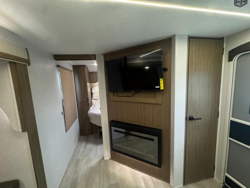 As you get away for the weekend to enjoy nature's beauty, you'll be so glad that you chose to bring this Salem travel trailer along! The full kitchen with its cooktop, microwave and walk-in pantry will allow you to prep meals whenever it is convenient for you, and the large slide that contains the functional Versa Flex table with chairs provides a place to dine or work. There is also an L-shaped sofa to relax on across from the fireplace! Your kids will be able to invite a friend or two because of the double-size bunks that are in the back, and since these bunks are right next to the full bathroom with a walk-in shower, your kids won't have to search far in the middle of the night.