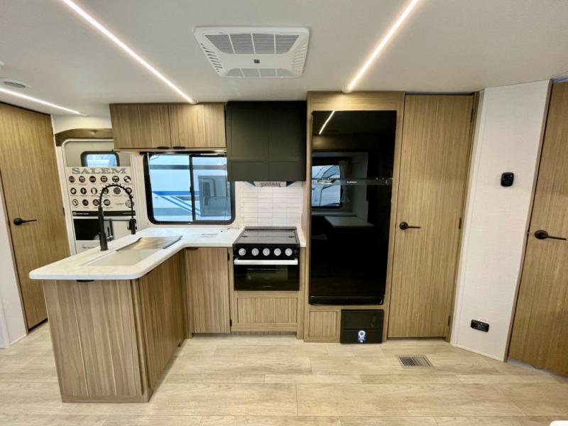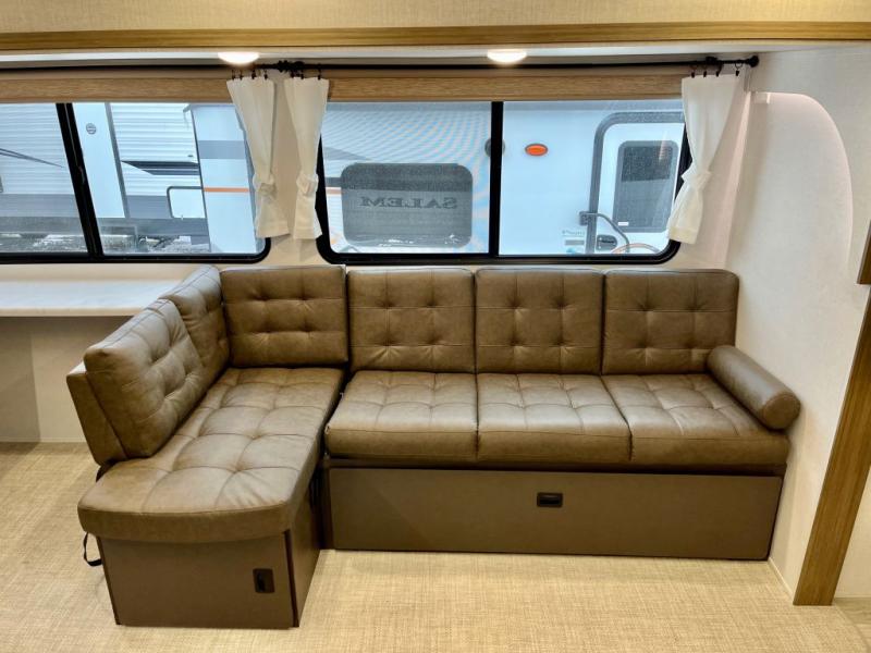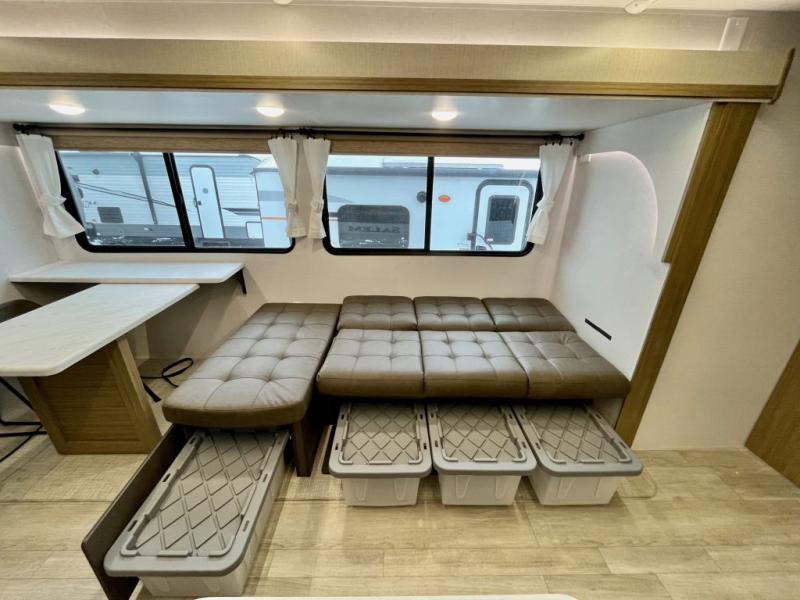 The Salem travel trailers are packed with hassle-free camping amenities! There are a variety of floorplans to choose from between three different regions. The heated and enclosed Accessibelly will help protect against the elements and debris during transport, and the exterior retro/metal redesign is sure to be eye-catching! There are stylish roller shades inside, along with updated backsplash, elegant curtain rods and curtains, plus many more interior comforts! Choose a Salem travel trailer today for quality and value!