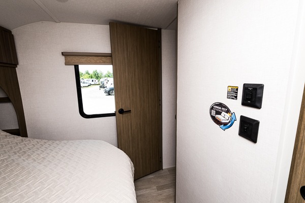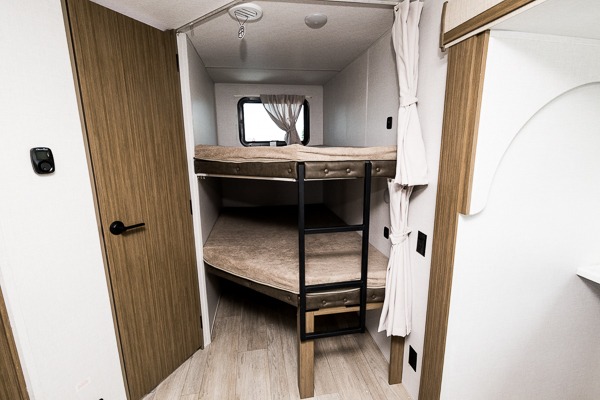 As you get away for the weekend to enjoy nature's beauty, you'll be so glad that you chose to bring this Salem travel trailer along! The full kitchen with its cooktop, microwave and walk-in pantry will allow you to prep meals whenever it is convenient for you, and the large slide that contains the functional Versa Flex table with chairs provides a place to dine or work. There is also an L-shaped sofa to relax on across from the fireplace! Your kids will be able to invite a friend or two because of the double-size bunks that are in the back, and since these bunks are right next to the full bathroom with a walk-in shower, your kids won't have to search far in the middle of the night.