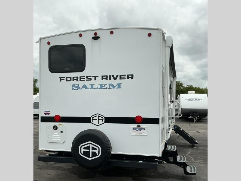 The Salem Platinum travel trailers are packed with hassle-free camping amenities! There are a variety of floorplans to choose from between three different regions. The heated and enclosed Accessibelly will help protect against the elements and debris during transport, and the exterior fiberglass is sure to be eye-catching! There are stylish roller shades inside, along with updated backsplash, elegant curtain rods and curtains, plus many more interior comforts! Choose a Salem travel trailer today for quality and value!