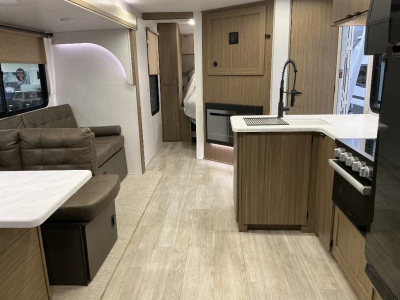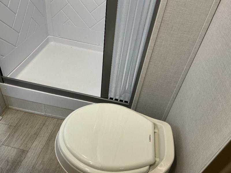 As you get away for the weekend to enjoy nature's beauty, you'll be so glad that you chose to bring this Salem Platinum travel trailer along! The full kitchen with its cooktop, microwave and walk-in pantry will allow you to prep meals whenever it is convenient for you, and the large slide that contains the functional Versa Flex table with chairs provides a place to dine or work. There is also an L-shaped sofa to relax on across from the fireplace! Your kids will be able to invite a friend or two because of the double-size bunks that are in the back, and since these bunks are right next to the full bathroom with a walk-in shower, your kids won't have to search far in the middle of the night.