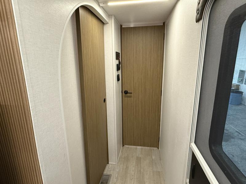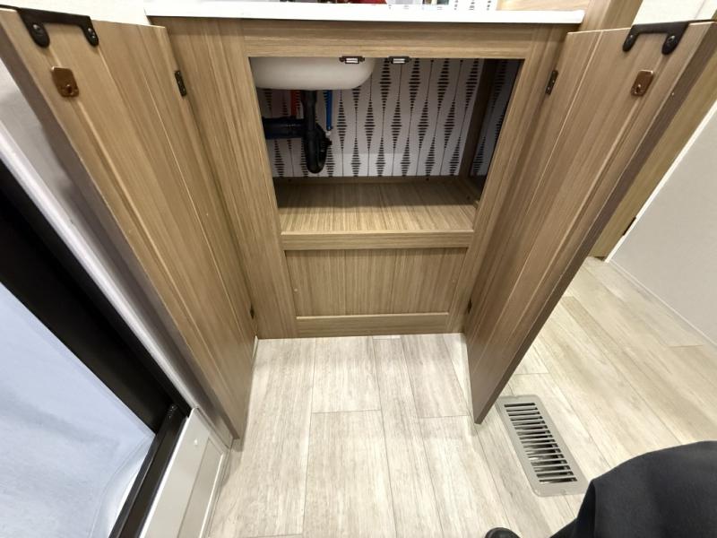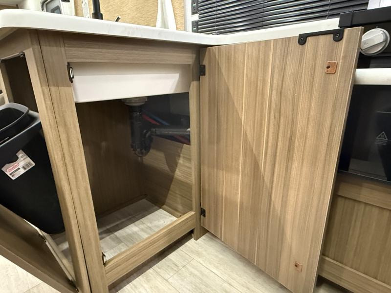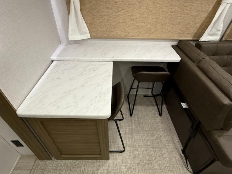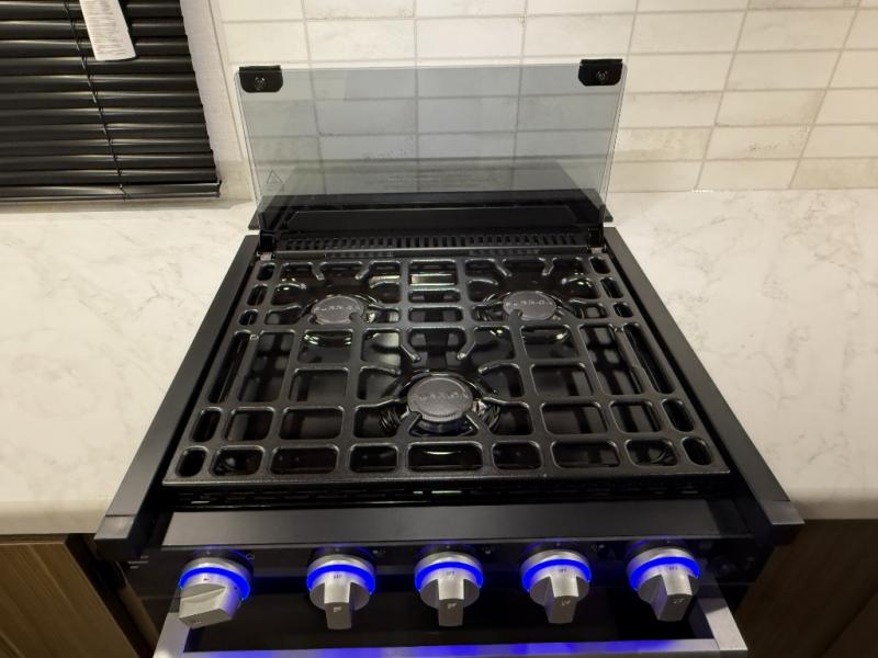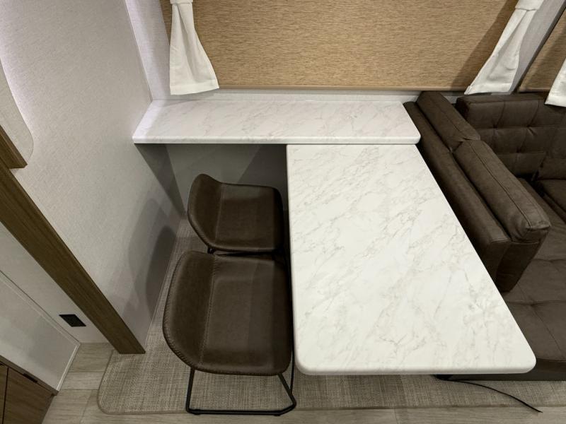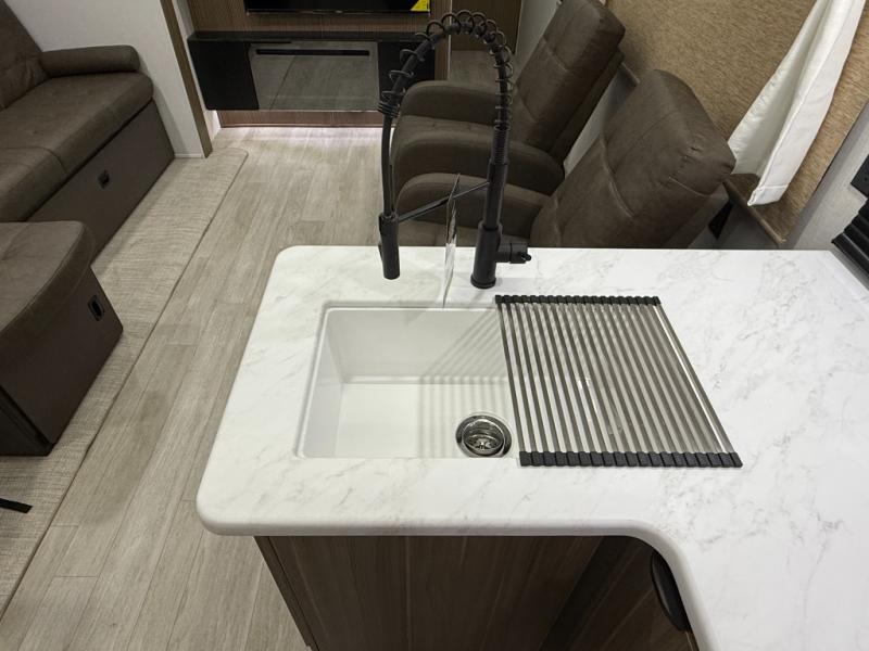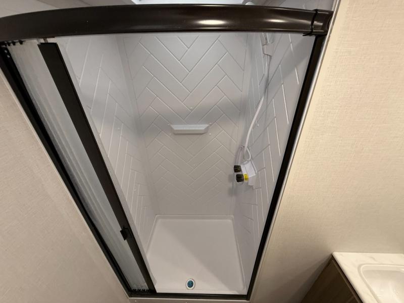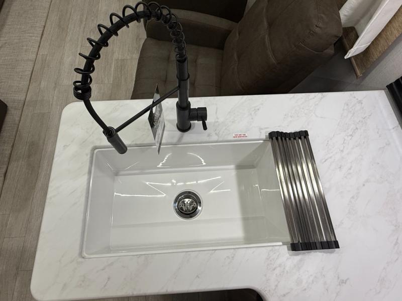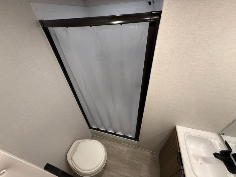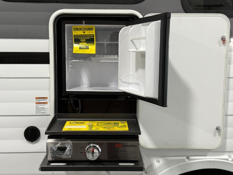 With a spacious kitchen and panoramic windows, this travel trailer is sure to stand out! The L-shaped sofa, dual lounge chairs, and Versa Flex table give you many seating options. You can either cook a delicious meal in the rear kitchen or you can use the exterior camp kitchen to breathe in some fresh air while you cook. After a fun-filled day, you can rinse off in the walk-in shower then head to the front private bedroom, grab your pajamas from the closet, and lay down on the custom king bed with Versa Tilt for a good night's rest!