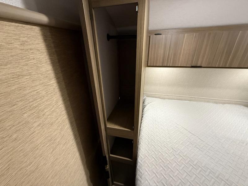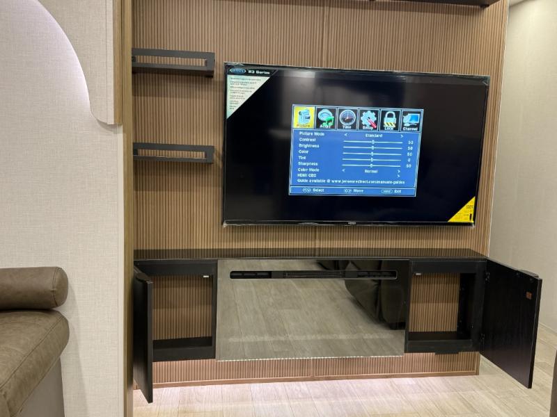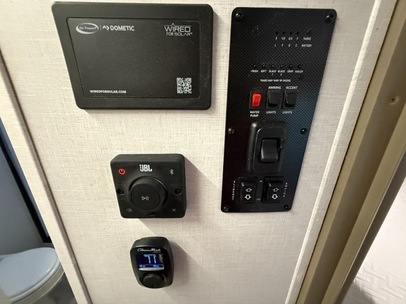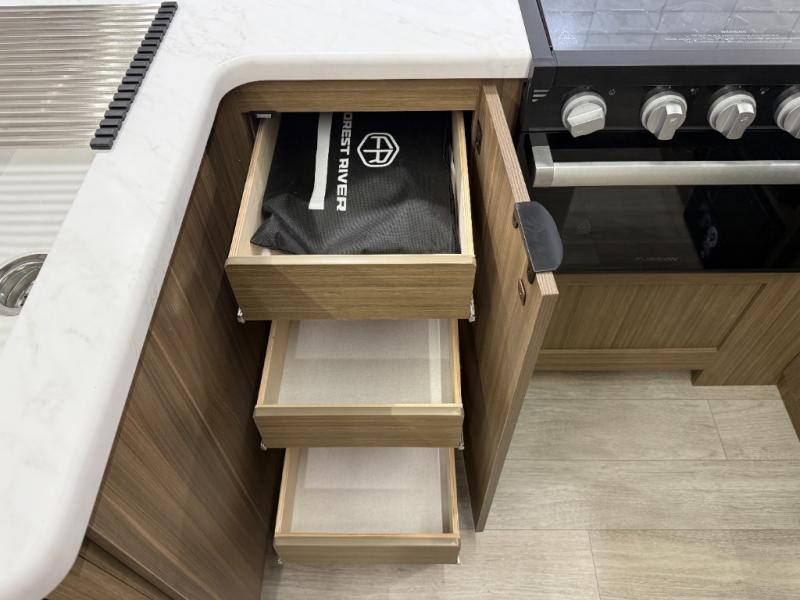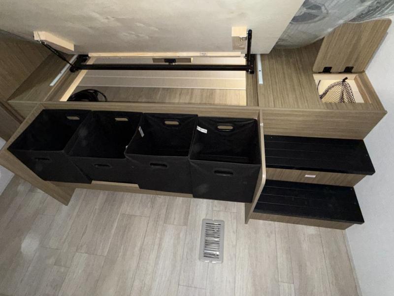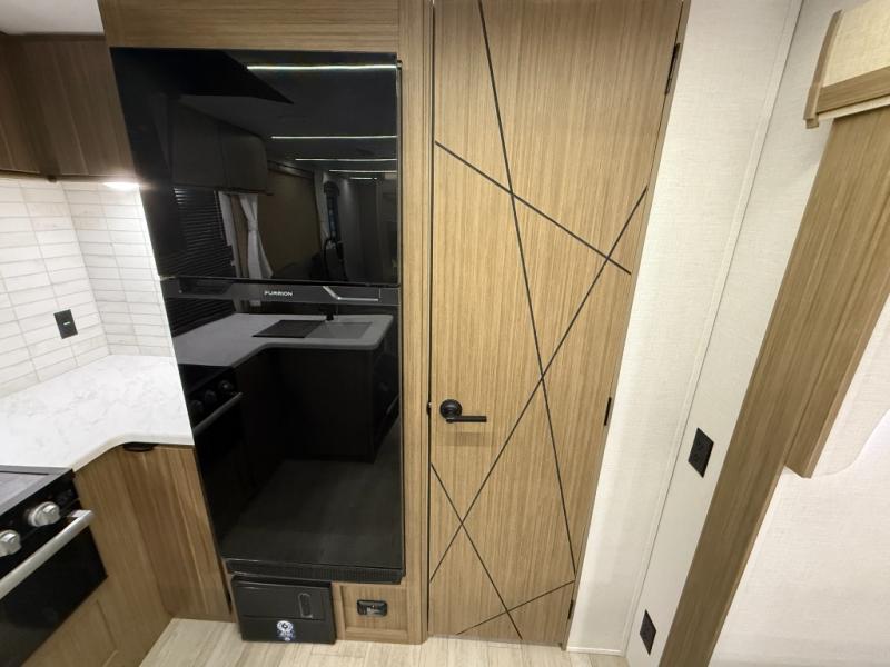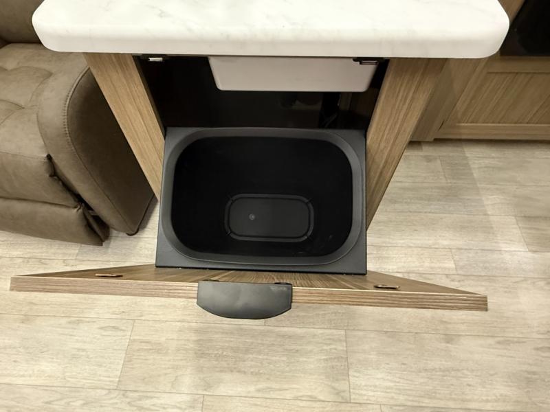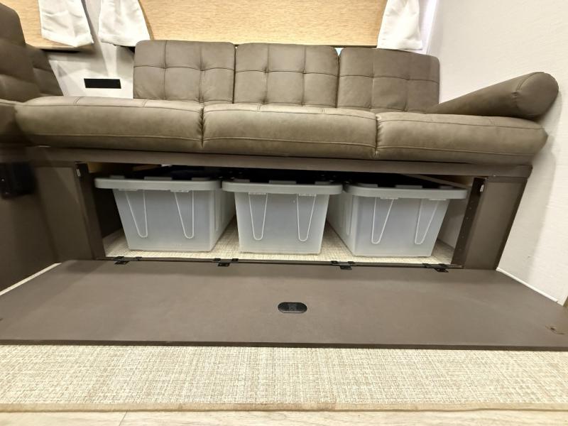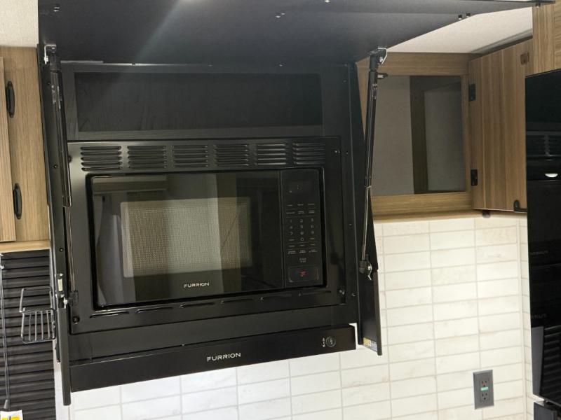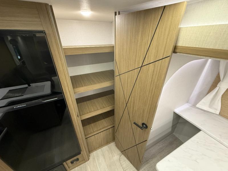 With a spacious kitchen and panoramic windows, this travel trailer is sure to stand out! The L-shaped sofa, dual lounge chairs, and Versa Flex table give you many seating options. You can either cook a delicious meal in the rear kitchen or you can use the exterior camp kitchen to breathe in some fresh air while you cook. After a fun-filled day, you can rinse off in the walk-in shower then head to the front private bedroom, grab your pajamas from the closet, and lay down on the custom king bed with Versa Tilt for a good night's rest!