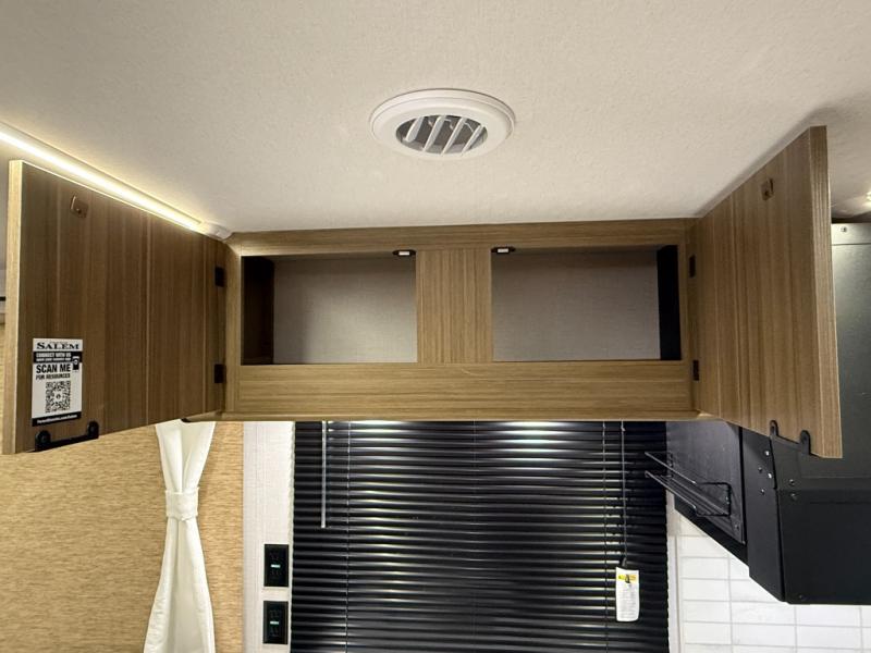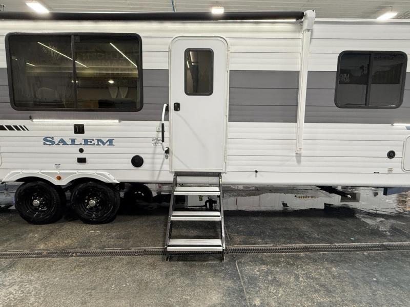 The Salem travel trailers are packed with hassle-free camping amenities! There are a variety of floorplans to choose from between three different regions. The heated and enclosed Accessibelly will help protect against the elements and debris during transport, and the exterior retro/metal redesign is sure to be eye-catching! There are stylish roller shades inside, along with updated backsplash, elegant curtain rods and curtains, plus many more interior comforts! Choose a Salem travel trailer today for quality and value!