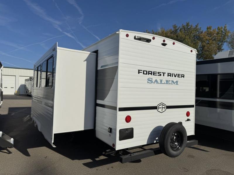 The Salem travel trailers are packed with hassle-free camping amenities! There are a variety of floorplans to choose from between three different regions. The heated and enclosed Accessibelly will help protect against the elements and debris during transport, and the exterior retro/metal redesign is sure to be eye-catching! There are stylish roller shades inside, along with updated backsplash, elegant curtain rods and curtains, plus many more interior comforts! Choose a Salem travel trailer today for quality and value!