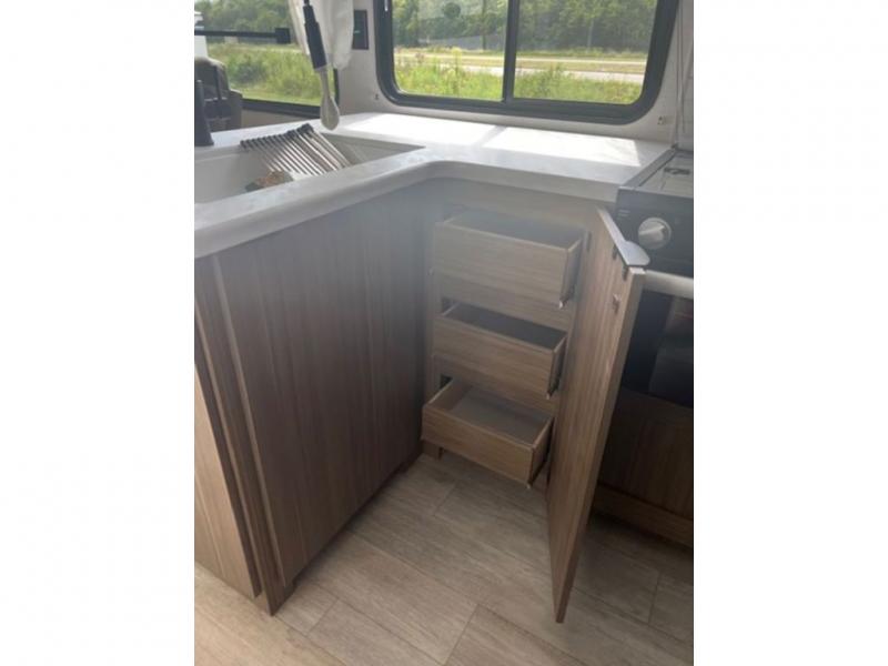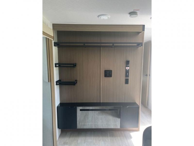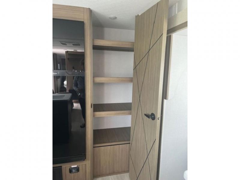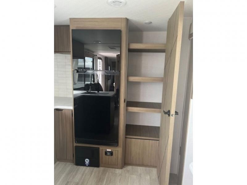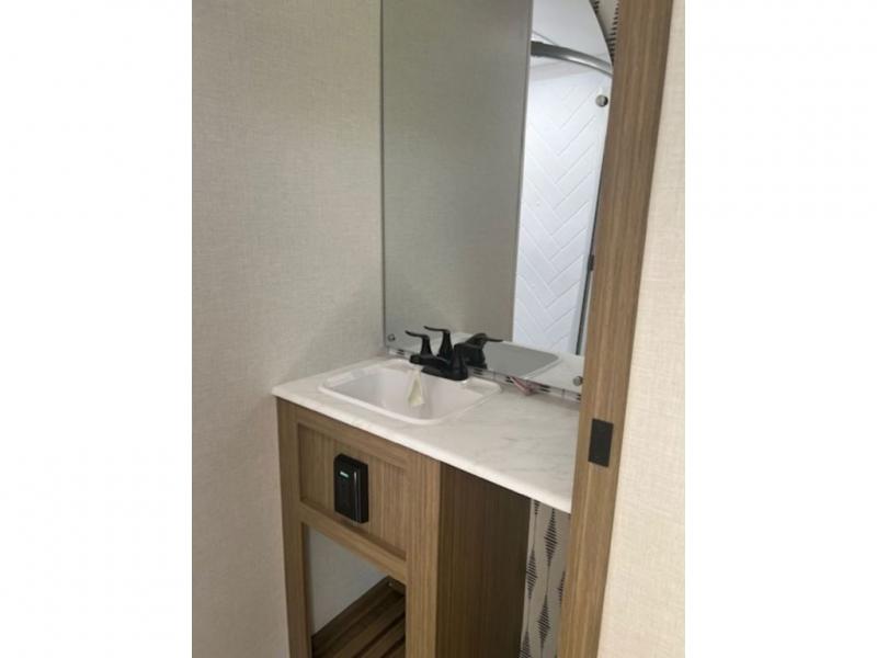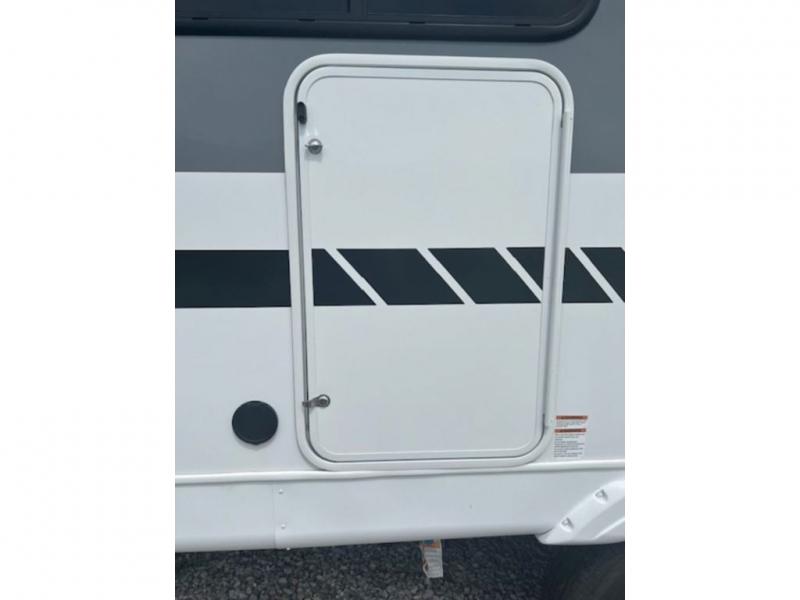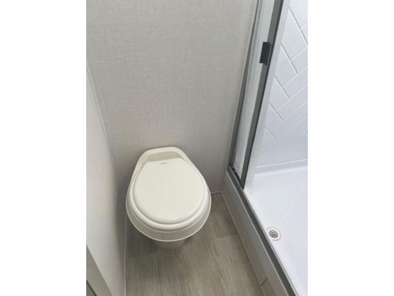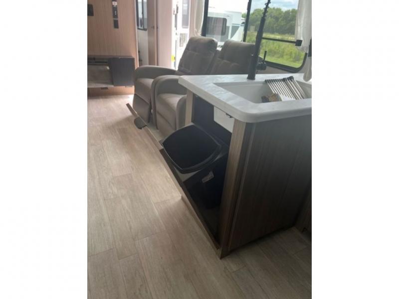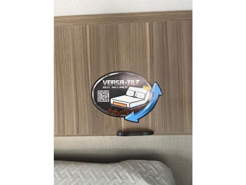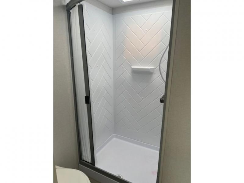 With a spacious kitchen and panoramic windows, this travel trailer is sure to stand out! The L-shaped sofa, dual lounge chairs, and Versa Flex table give you many seating options. You can either cook a delicious meal in the rear kitchen or you can use the exterior camp kitchen to breathe in some fresh air while you cook outdoors. After a fun-filled day, you can rinse off in the walk-in shower then head to the front private bedroom where you will find a Versa-Tilt custom king bed for a good night's rest!