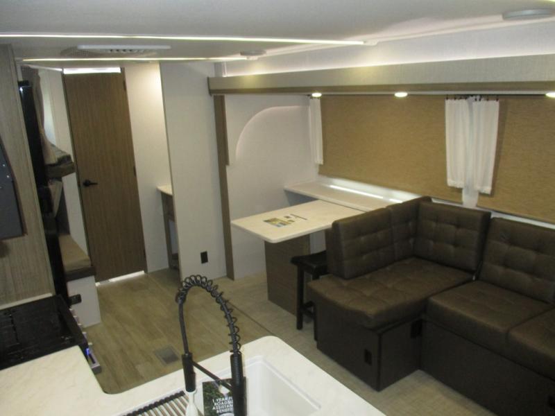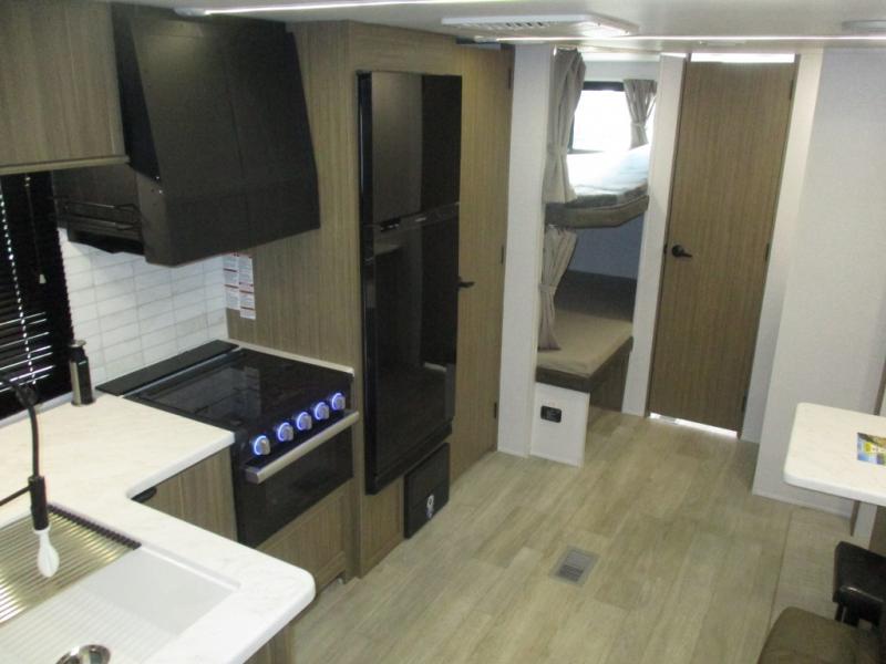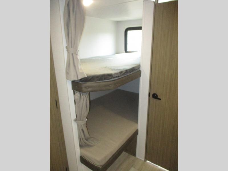As you get away for the weekend to enjoy nature's beauty, you'll be so glad that you chose to bring this Salem travel trailer along! The full kitchen with its three-burner cooktop, overhead microwave oven, oversized refrigerator, and walk-in pantry will allow you to prep meals whenever it is convenient for you. The large slide that contains the extremely functional Versa Lounge and u-dinette will deliver extra space to the interior so that you don't feel cramped. Your kids will be able to invite a friend or two because of the double-size bunks that are in the back, and since these bunks are right next to the full bathroom with a walk-in shower, your kids won't have to go far in the middle of the night.