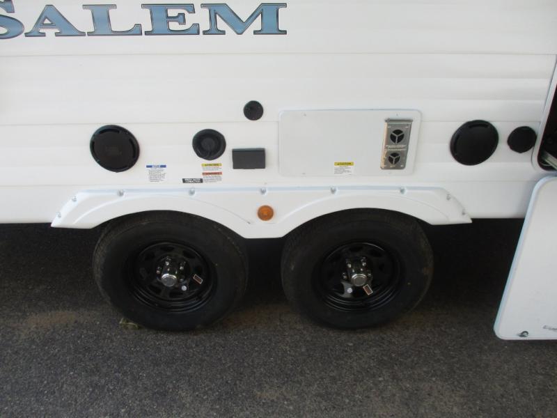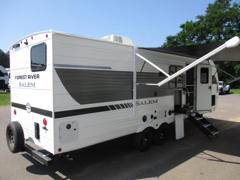 Enjoy years and years of memories with any one of these Forest River Salem travel trailers! They are built with a Dicor PVC roof membrane, a powder coated I-beam frame, and an aerodynamic front radius profile for an easier tow. The triple seal slide out system prevents water from seeping inside and keeps it outside where it belongs. The Best In Class Value Package includes upgraded designer furniture, seamless countertops with no T-mold, and two zone residential soundbars with FM, Bluetooth, HDMI and USB. You will also appreciate the heated and enclosed Accessi-Belly with removable underbelly panels, the power tongue jack with an LED light, and the designated CPAP storage. Some new upgraded features include: a Versa-Tilt bed, a 60K tankless water heater, upgraded showerhead, and so much more!