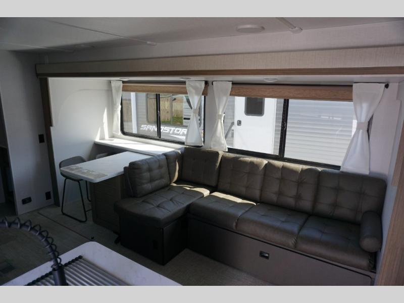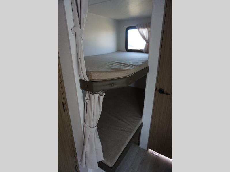 As you get away for the weekend to enjoy nature's beauty, you'll be so glad that you chose to bring this Salem travel trailer along! The full kitchen with its cooktop, overhead microwave oven, oversized refrigerator, and walk-in pantry will allow you to prep meals whenever it is convenient for you. The large slide that contains the L-shaped sofa and Versa Flex table will deliver extra space to the interior so that you don't feel cramped. Your kids will be able to invite a friend or two because of the double-size bunks that are in the back, and since these bunks are right next to the full bathroom with a walk-in shower, your kids won't have to go far in the middle of the night. You might also like to add the optional exterior kitchen if you enjoy cooking outdoors!