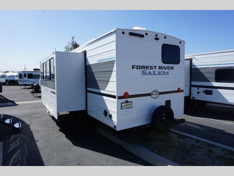 The Salem travel trailers are packed with hassle-free camping amenities! There are a variety of floorplans to choose from between three different regions. The heated and enclosed Accessibelly will help protect against the elements and debris during transport, and the exterior retro/metal redesign is sure to be eye-catching! There are stylish roller shades inside, along with updated backsplash, elegant curtain rods and curtains, plus many more interior comforts! Choose a Salem travel trailer today for quality and value!