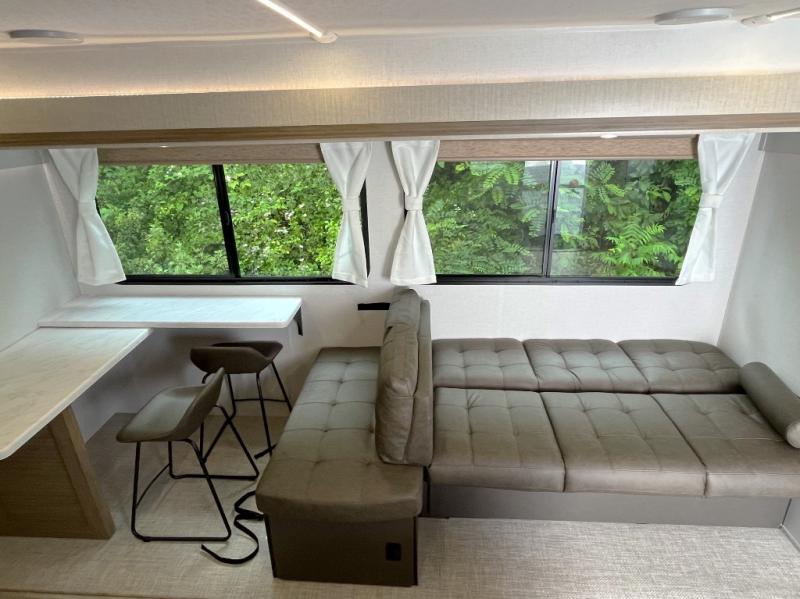 As you get away for the weekend to enjoy nature's beauty, you'll be so glad that you chose to bring this Salem travel trailer along! The full kitchen with its cooktop, overhead microwave oven, oversized refrigerator, and walk-in pantry will allow you to prep meals whenever it is convenient for you. The large slide that contains the L-shaped sofa and Versa Flex table will deliver extra space to the interior so that you don't feel cramped. Your kids will be able to invite a friend or two because of the double-size bunks that are in the back, and since these bunks are right next to the full bathroom with a walk-in shower, your kids won't have to go far in the middle of the night. You might also like to add the optional exterior kitchen if you enjoy cooking outdoors!