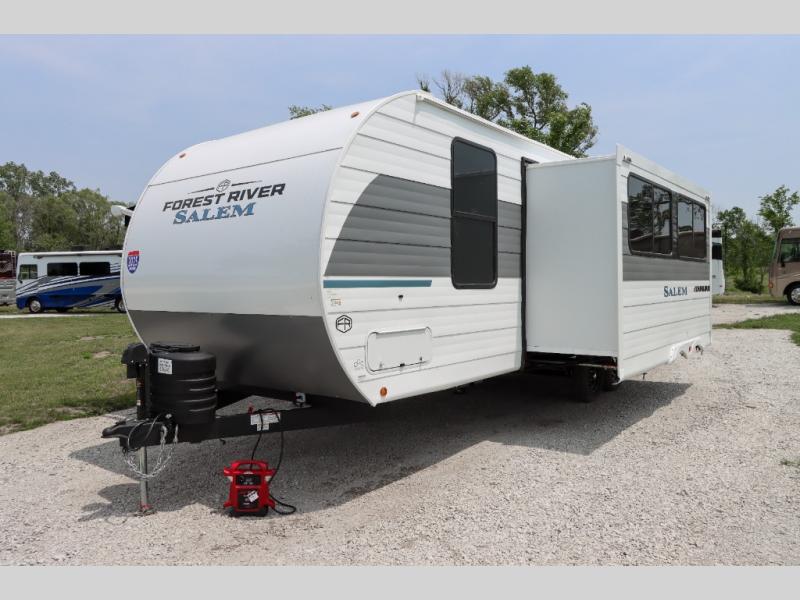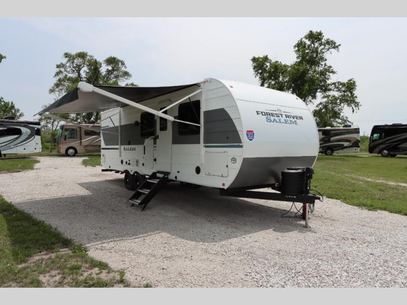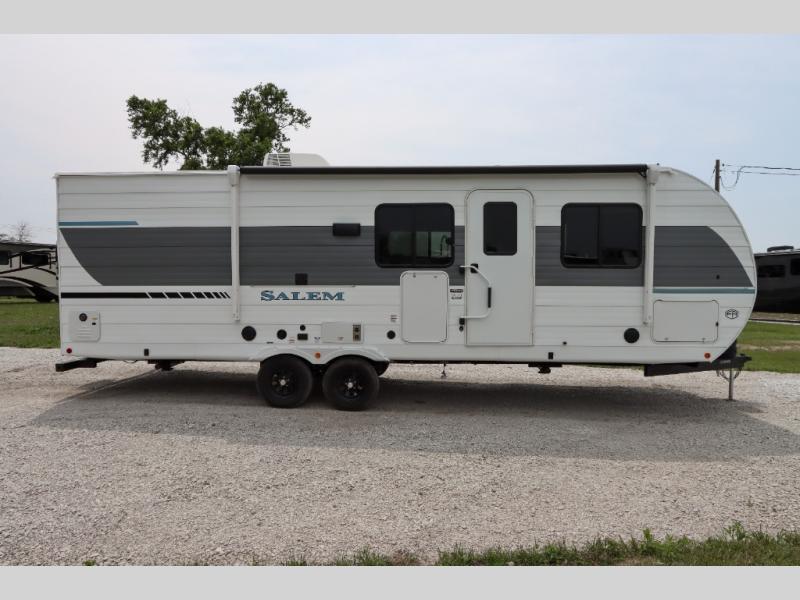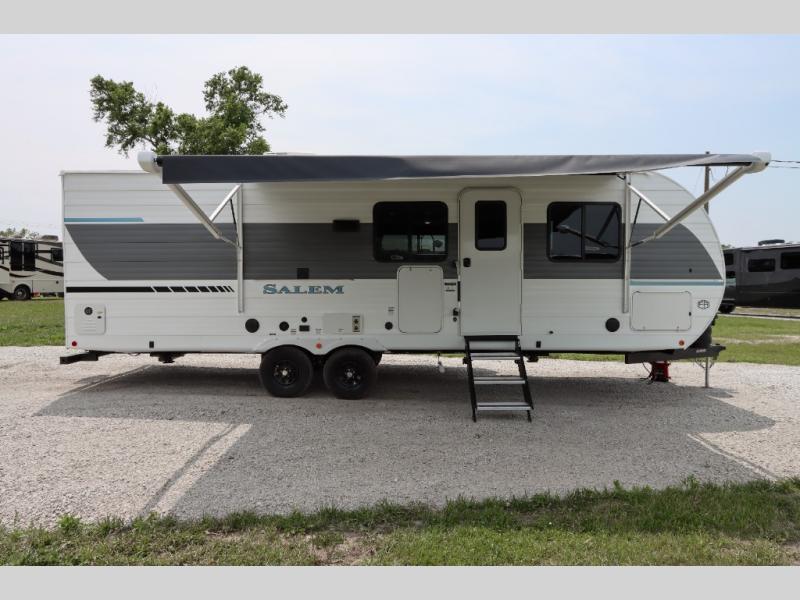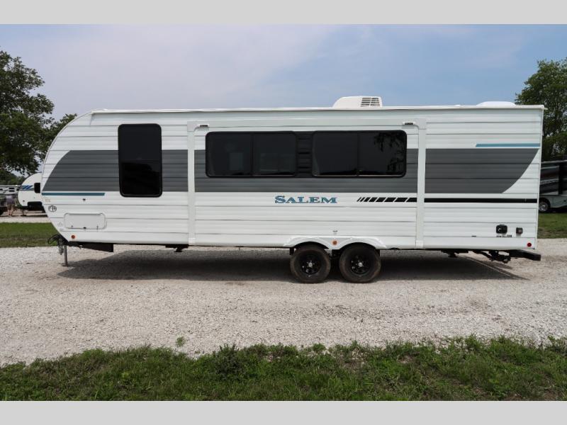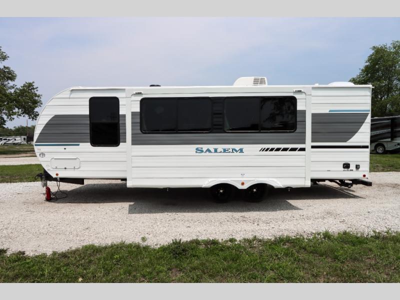 The Salem travel trailers are packed with hassle-free camping amenities! There are a variety of floorplans to choose from between three different regions. The heated and enclosed Accessibelly will help protect against the elements and debris during transport, and the exterior retro/metal redesign is sure to be eye-catching! There are stylish roller shades inside, along with updated backsplash, elegant curtain rods and curtains, plus many more interior comforts! Choose a Salem travel trailer today for quality and value!
