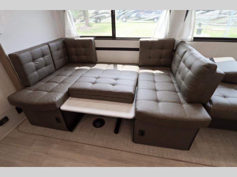 As you get away for the weekend to enjoy nature's beauty, you'll be so glad that you chose to bring this Salem travel trailer along! The full kitchen with its cooktop, overhead microwave oven, oversized refrigerator, and walk-in pantry will allow you to prep meals whenever it is convenient for you. The large slide that contains the L-shaped sofa and Versa Flex table will deliver extra space to the interior so that you don't feel cramped. Your kids will be able to invite a friend or two because of the double-size bunks that are in the back, and since these bunks are right next to the full bathroom with a walk-in shower, your kids won't have to go far in the middle of the night. You might also like to add the optional exterior kitchen if you enjoy cooking outdoors!