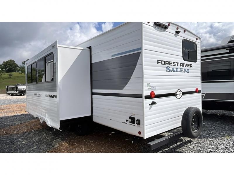The Salem travel trailers are packed with hassle-free camping amenities! There are a variety of floorplans to choose from between three different regions. The heated and enclosed Accessibelly will help protect against the elements and debris during transport, and the exterior retro/metal redesign is sure to be eye-catching! There are stylish roller shades inside, along with updated backsplash, elegant curtain rods and curtains, plus many more interior comforts! Choose a Salem travel trailer today for quality and value!