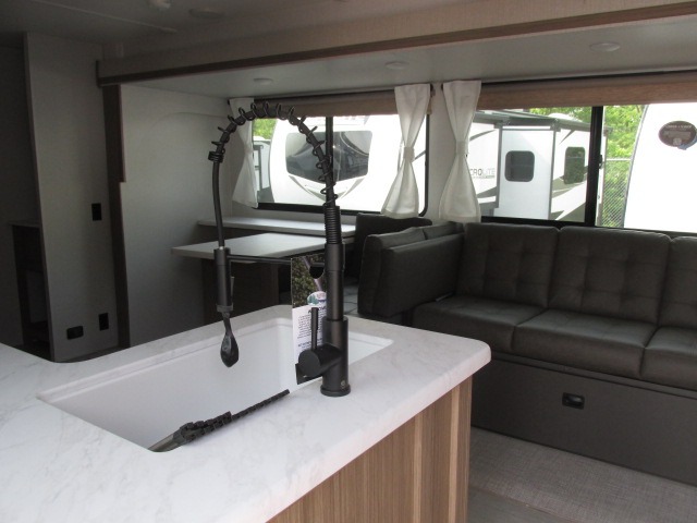 As you get away for the weekend to enjoy nature's beauty, you'll be so glad that you chose to bring this Salem travel trailer along! The full kitchen with its cooktop, overhead microwave oven, oversized refrigerator, and walk-in pantry will allow you to prep meals whenever it is convenient for you. The large slide that contains the L-shaped sofa and Versa Flex table will deliver extra space to the interior so that you don't feel cramped. Your kids will be able to invite a friend or two because of the double-size bunks that are in the back, and since these bunks are right next to the full bathroom with a walk-in shower, your kids won't have to go far in the middle of the night. You might also like to add the optional exterior kitchen if you enjoy cooking outdoors!