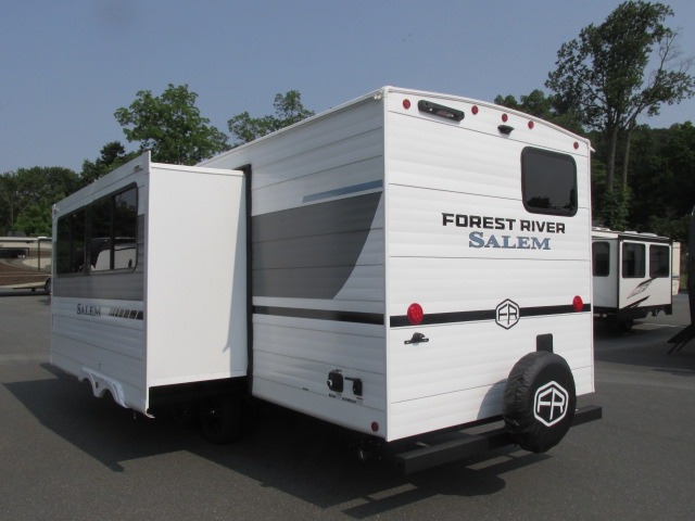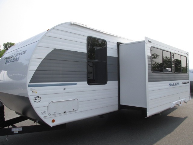 The Salem travel trailers are packed with hassle-free camping amenities! There are a variety of floorplans to choose from between three different regions. The heated and enclosed Accessibelly will help protect against the elements and debris during transport, and the exterior retro/metal redesign is sure to be eye-catching! There are stylish roller shades inside, along with updated backsplash, elegant curtain rods and curtains, plus many more interior comforts! Choose a Salem travel trailer today for quality and value!