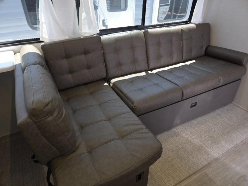 As you get away for the weekend to enjoy nature's beauty, you'll be so glad that you chose to bring this Salem travel trailer along! The full kitchen with its cooktop, overhead microwave oven, oversized refrigerator, and walk-in pantry will allow you to prep meals whenever it is convenient for you. The large slide that contains the L-shaped sofa and Versa Flex table will deliver extra space to the interior so that you don't feel cramped. Your kids will be able to invite a friend or two because of the double-size bunks that are in the back, and since these bunks are right next to the full bathroom with a walk-in shower, your kids won't have to go far in the middle of the night. You might also like to add the optional exterior kitchen if you enjoy cooking outdoors!