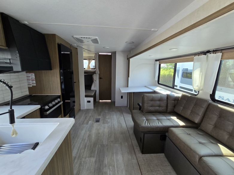 As you get away for the weekend to enjoy nature's beauty, you'll be so glad that you chose to bring this Salem travel trailer along! The full kitchen with its cooktop, overhead microwave oven, oversized refrigerator, and walk-in pantry will allow you to prep meals whenever it is convenient for you. The large slide that contains the L-shaped versa lounge and Versa Flex table will deliver extra space to the interior so that you don't feel cramped. Your kids will be able to invite a friend or two because of the double-size bunks that are in the back, and since these bunks are right next to the full bathroom with a walk-in shower, your kids won't have to go far in the middle of the night. You might also like to add the optional exterior kitchen if you enjoy cooking outdoors!