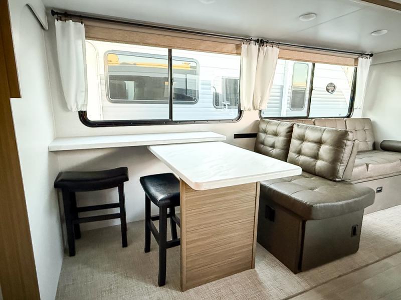 As you get away for the weekend to enjoy nature's beauty, you'll be so glad that you chose to bring this Salem travel trailer along! The full kitchen with its cooktop, overhead microwave oven, oversized refrigerator, and walk-in pantry will allow you to prep meals whenever it is convenient for you. The large slide that contains the L-shaped versa lounge and Versa Flex table will deliver extra space to the interior so that you don't feel cramped. Your kids will be able to invite a friend or two because of the double-size bunks that are in the back, and since these bunks are right next to the full bathroom with a walk-in shower, your kids won't have to go far in the middle of the night. You might also like to add the optional exterior kitchen if you enjoy cooking outdoors!