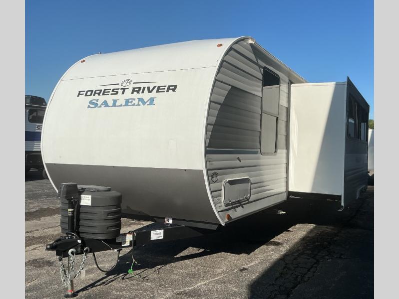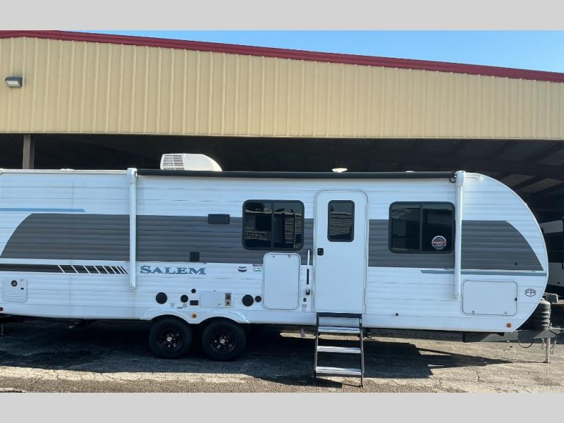 The Salem travel trailers are packed with hassle-free camping amenities! There are a variety of floorplans to choose from between three different regions. The heated and enclosed Accessibelly will help protect against the elements and debris during transport, and the exterior retro/metal redesign is sure to be eye-catching! There are stylish roller shades inside, along with updated backsplash, elegant curtain rods and curtains, plus many more interior comforts! Choose a Salem travel trailer today for quality and value!