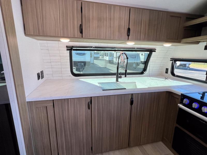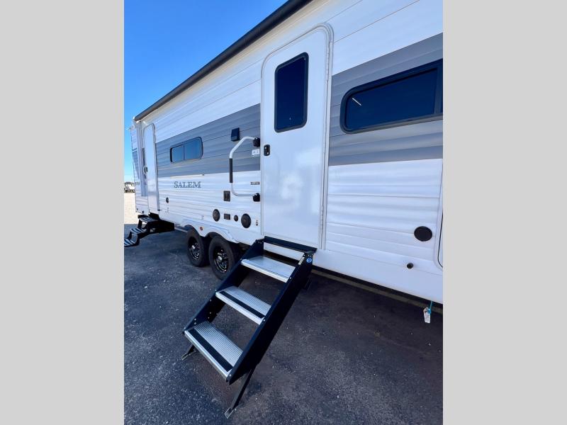 The Salem travel trailers are packed with hassle-free camping amenities! There are a variety of floorplans to choose from between three different regions. The heated and enclosed Accessibelly will help protect against the elements and debris during transport, and the exterior retro/metal redesign is sure to be eye-catching! There are stylish roller shades inside, along with updated backsplash, elegant curtain rods and curtains, plus many more interior comforts! Choose a Salem travel trailer today for quality and value!