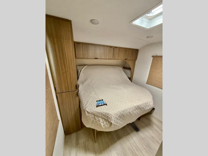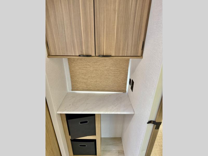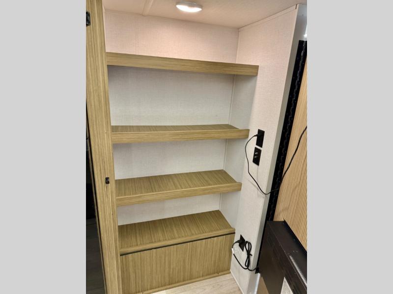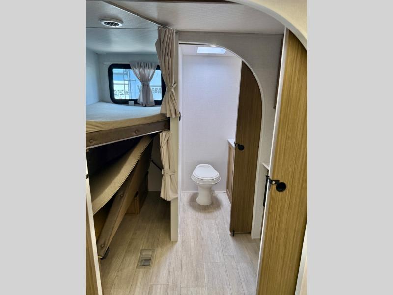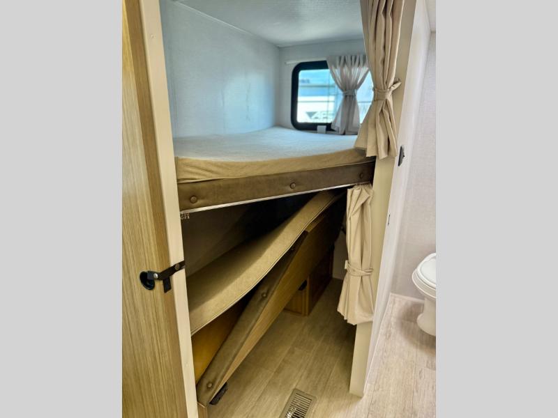 When you're ready to upgrade your RV to a unit with more sleeping space and comfort, choose this Salem travel trailer, and you'll never look back. After setting up camp, put out the large slide and prepare lunch indoors or outside at the outdoor kitchen, and the 20' power awning will shade you from the sun. The kids will find all their snacks in the hidden pantry behind the entertainment center, and their drinks in the oversized fridge. This model features a rear private bunkhouse with a set of double-size bunks, a desk and a half bath. You will also love the front private bedroom that includes a custom king with Versa Tilt bed and dual bedside closets with nightstands below.