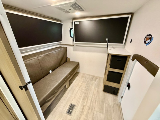 It won't be long before your family asks you to plan another trip with this Salem travel trailer! The 18' awning lets you have fun playing games outside while you stay protected from the sun or rain, and the interior will certainly provide loads of excitement with great features. You will appreciate finding an oversized refrigerator and walk-in pantry in the kitchen, a front private bedroom with a Versa Tilt custom king bed, and a fireplace across from the Versa Lounge which happens to be the ultimate in furniture versatility. Your guests or the kids are sure to love their own space in the private bunkhouse with ample sleeping space!