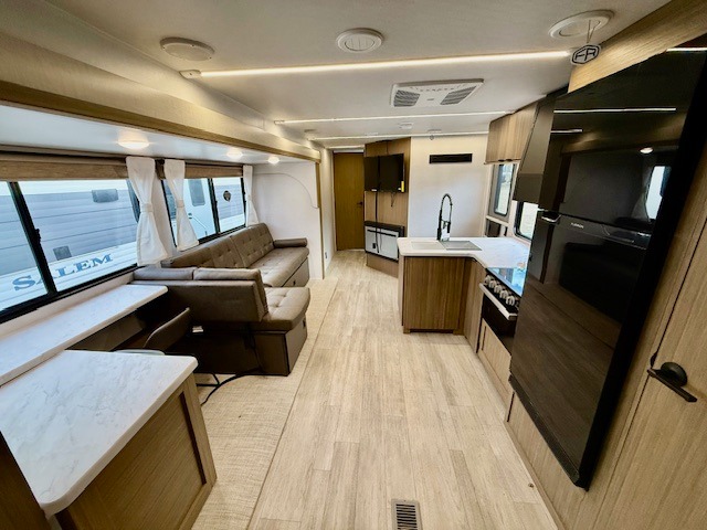 The Salem travel trailers are packed with hassle-free camping amenities! There are a variety of floorplans to choose from between three different regions. The heated and enclosed Accessibelly will help protect against the elements and debris during transport, and the exterior retro/metal redesign is sure to be eye-catching! There are stylish roller shades inside, along with updated backsplash, elegant curtain rods and curtains, plus many more interior comforts! Choose a Salem travel trailer today for quality and value!