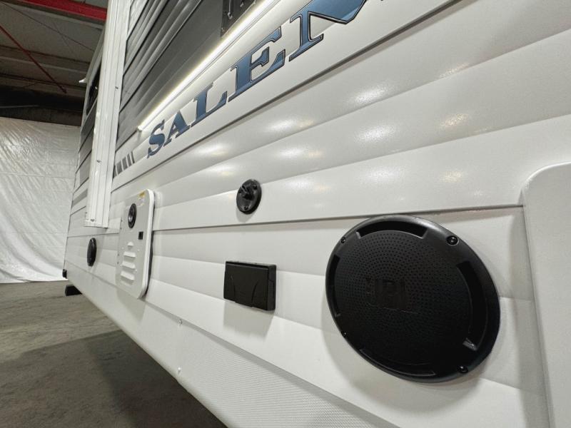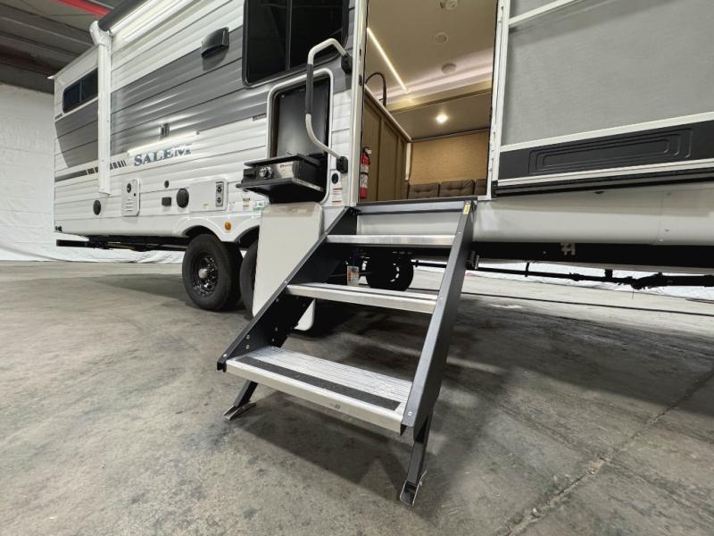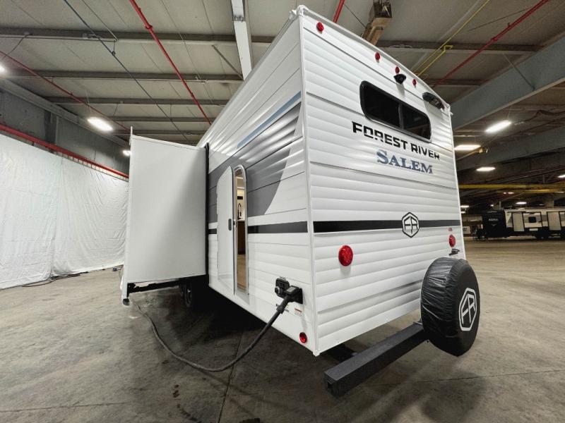 The Salem travel trailers are packed with hassle-free camping amenities! There are a variety of floorplans to choose from between three different regions. The heated and enclosed Accessibelly will help protect against the elements and debris during transport, and the exterior retro/metal redesign is sure to be eye-catching! There are stylish roller shades inside, along with updated backsplash, elegant curtain rods and curtains, plus many more interior comforts! Choose a Salem travel trailer today for quality and value!