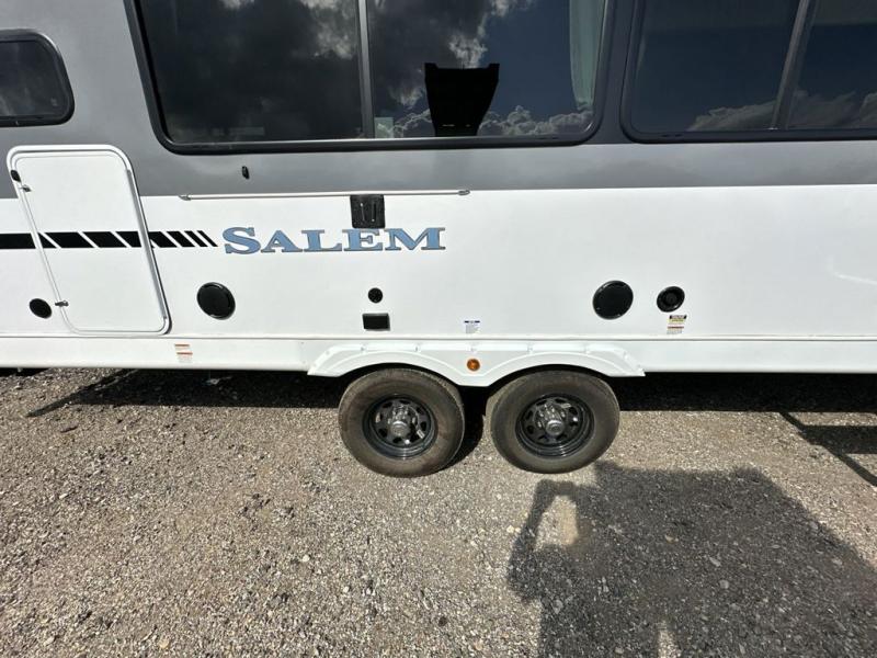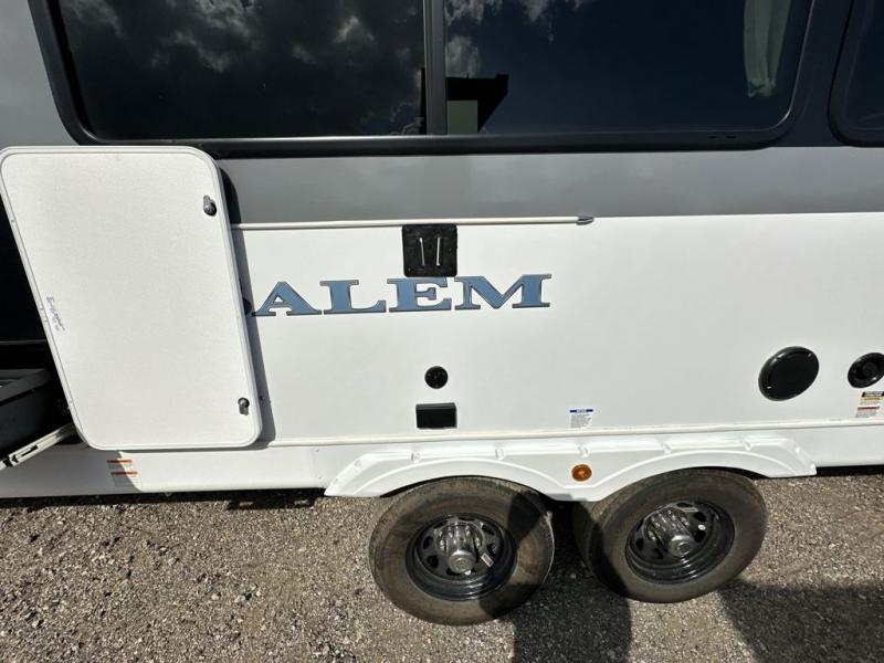 The Salem travel trailers are packed with hassle-free camping amenities! There are a variety of floorplans to choose from between three different regions. The heated and enclosed Accessibelly will help protect against the elements and debris during transport, and the exterior is sure to be eye-catching! There are stylish roller shades inside, along with updated backsplash, elegant curtain rods and curtains, plus many more interior comforts! Choose a Salem travel trailer today for quality and value!
