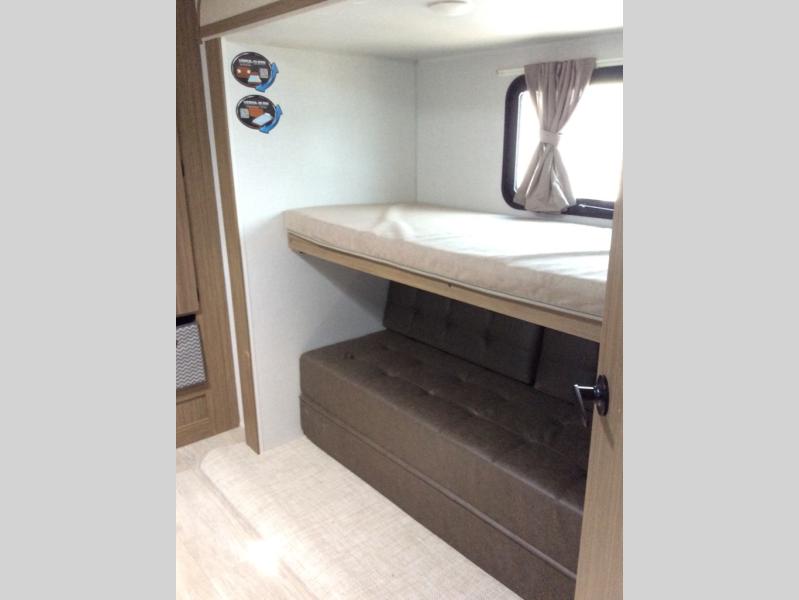 The rear private bunkhouse in this Salem travel trailer is super accommodating for your kids or your overnight guests! It has two opposing slides which provide extra floor space and a full-width closet/entertainment center which delivers extra space for backpacks and tennis shoes. The front private bedroom will be perfect for mom and dad with its custom king bed and dual closets, and any additional guests can sleep on the Versa Lounge or U-shaped dinette. Everyone will enjoy their own space when it's time to freshen up in the full bath with a walk-in shower, and the chef of the group will have all the appliances needed to make meals each day. And don't forget about the outdoor kitchen for outdoor fun!