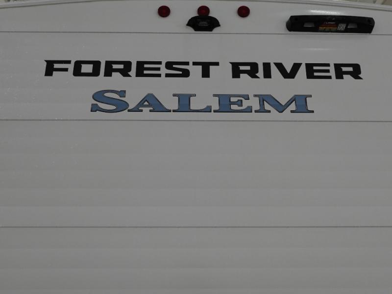 The Salem travel trailers are packed with hassle-free camping amenities! There are a variety of floorplans to choose from between three different regions. The heated and enclosed Accessibelly will help protect against the elements and debris during transport, and the exterior retro/metal redesign is sure to be eye-catching! There are stylish roller shades inside, along with updated backsplash, elegant curtain rods and curtains, plus many more interior comforts! Choose a Salem travel trailer today for quality and value!