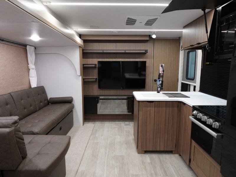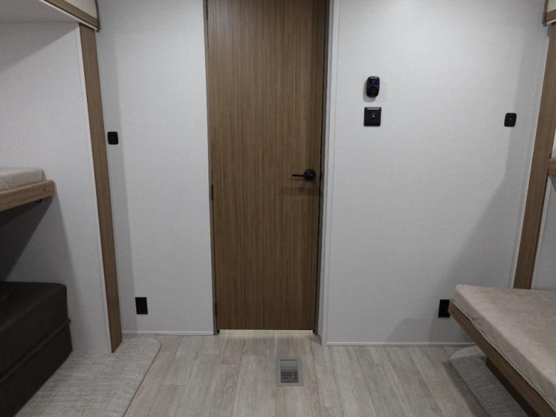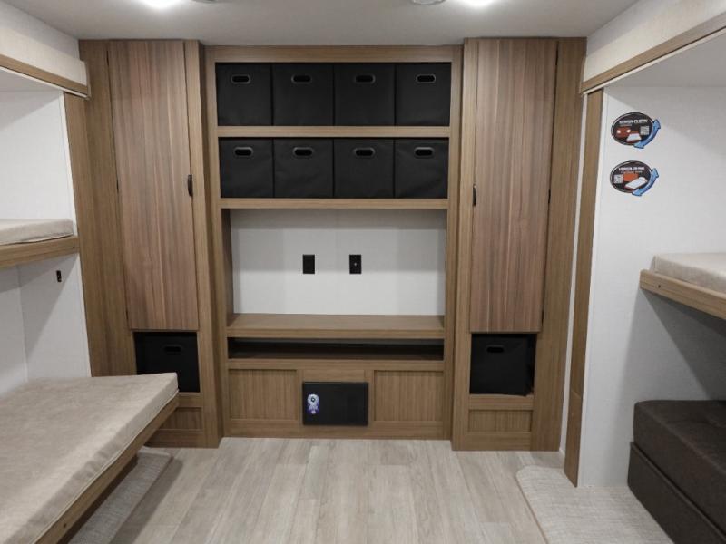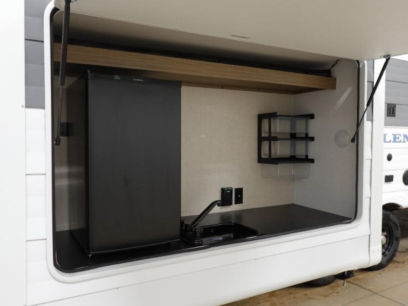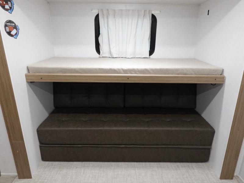 The rear private bunkhouse in this Salem travel trailer is super accommodating for your kids or your overnight guests! It has two opposing slides which provide extra floor space and a full-width closet/entertainment center which delivers extra space for backpacks and tennis shoes. The front private bedroom will be perfect for you with its custom king bed and dual closets, and any additional guests can sleep on the L-shaped versa lounge. There is also a Versa Flex table here to dine at or get some work done. Everyone will enjoy their own space when it's time to freshen up in the full bath with a walk-in shower, and the chef of the group will have all the appliances needed to make meals each day. And don't forget about the outdoor kitchen for outdoor fun!