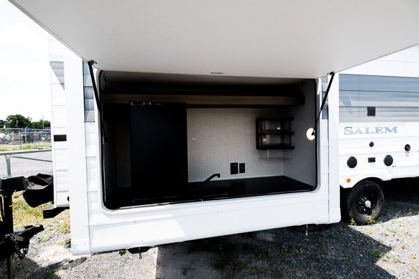The Salem travel trailers are packed with hassle-free camping amenities! There are a variety of floorplans to choose from between three different regions. The heated and enclosed Accessibelly will help protect against the elements and debris during transport, and the exterior retro/metal redesign is sure to be eye-catching! There are stylish roller shades inside, along with updated backsplash, elegant curtain rods and curtains, plus many more interior comforts! Choose a Salem travel trailer today for quality and value!