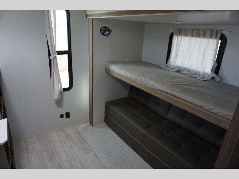 Your family will sleep comfortably with a private bunkhouse in the back and a private bedroom up front in this Salem travel trailer! Two entry doors allow you to enter this unit quickly and easily, and the StepAbove steps will provide a safe and solid entrance while you load up your gear. The large slide in the main living area holds the L-shaped sofa and Versa Flex table for seating, dining, and working space. This model also includes a custom king bed with Versa-Tilt in the front bedroom for a great night's rest!