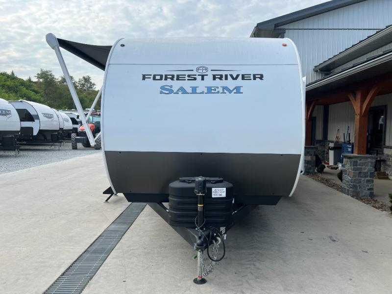 Enjoy years and years of memories with any one of these Forest River Salem travel trailers! They are built with a Dicor PVC roof membrane, a powder coated I-beam frame, and an aerodynamic front radius profile for an easier tow. The triple seal slide out system prevents water from seeping inside and keeps it outside where it belongs. The Best In Class Value Package includes upgraded designer furniture, seamless countertops with no T-mold, and two zone residential soundbars with FM, Bluetooth, HDMI and USB. You will also appreciate the heated and enclosed Accessi-Belly with removable underbelly panels, the power tongue jack with an LED light, and the designated CPAP storage. Some new upgraded features include: a Versa-Tilt bed, a 60K tankless water heater, upgraded showerhead, and so much more!