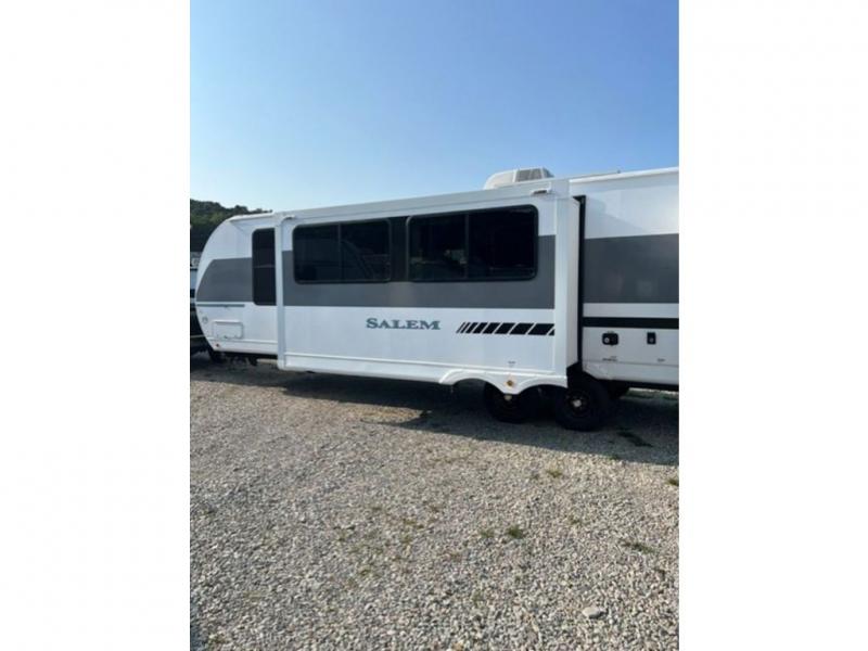 The Salem Platinum travel trailers are packed with hassle-free camping amenities! There are a variety of floorplans to choose from between three different regions. The heated and enclosed Accessibelly will help protect against the elements and debris during transport, and the exterior fiberglass is sure to be eye-catching! There are stylish roller shades inside, along with updated backsplash, elegant curtain rods and curtains, plus many more interior comforts! Choose a Salem travel trailer today for quality and value!