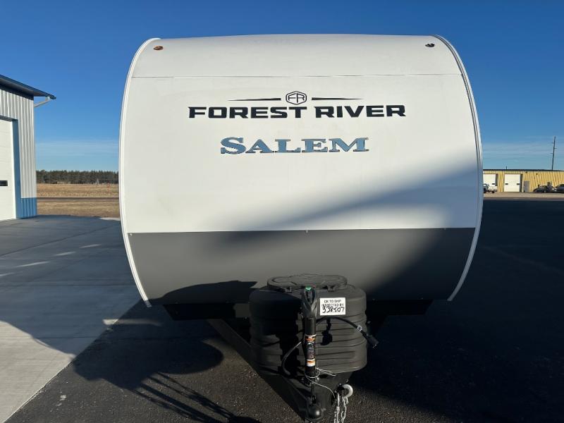 The Salem travel trailers are packed with hassle-free camping amenities! There are a variety of floorplans to choose from between three different regions. The heated and enclosed Accessibelly will help protect against the elements and debris during transport, and the exterior retro/metal redesign is sure to be eye-catching! There are stylish roller shades inside, along with updated backsplash, elegant curtain rods and curtains, plus many more interior comforts! Choose a Salem travel trailer today for quality and value!