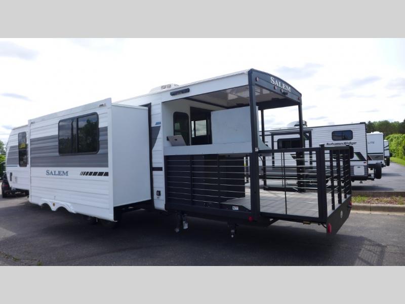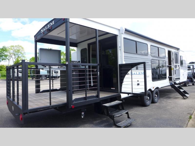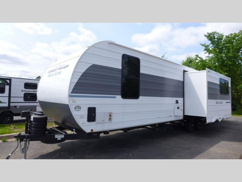 The Salem travel trailers are packed with hassle-free camping amenities! There are a variety of floorplans to choose from between three different regions. The heated and enclosed Accessibelly will help protect against the elements and debris during transport, and the exterior retro/metal redesign is sure to be eye-catching! There are stylish roller shades inside, along with updated backsplash, elegant curtain rods and curtains, plus many more interior comforts! Choose a Salem travel trailer today for quality and value!
