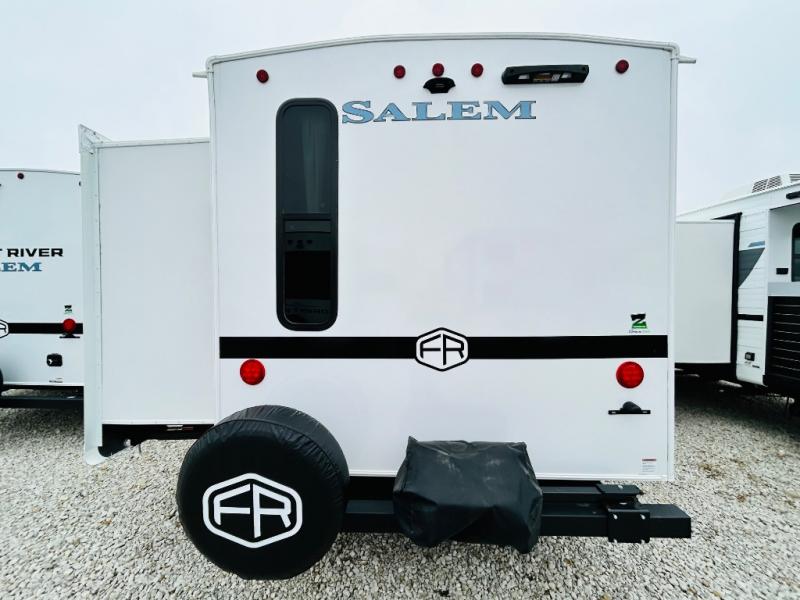 Enjoy years and years of memories with any one of these Forest River Salem travel trailers! They are built with a Dicor PVC roof membrane, a powder coated I-beam frame, and an aerodynamic front radius profile for an easier tow. The triple seal slide out system prevents water from seeping inside and keeps it outside where it belongs. The Best In Class Value Package includes upgraded designer furniture, seamless countertops with no T-mold, and two zone residential soundbars with FM, Bluetooth, HDMI and USB. You will also appreciate the heated and enclosed Accessi-Belly with removable underbelly panels, the power tongue jack with an LED light, and the designated CPAP storage. Some new upgraded features include: a Versa-Tilt bed, a 60K tankless water heater, upgraded showerhead, and so much more!