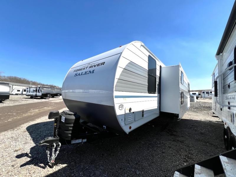 The Salem travel trailers are packed with hassle-free camping amenities! There are a variety of floorplans to choose from between three different regions. The heated and enclosed Accessibelly will help protect against the elements and debris during transport, and the exterior retro/metal redesign is sure to be eye-catching! There are stylish roller shades inside, along with updated backsplash, elegant curtain rods and curtains, plus many more interior comforts! Choose a Salem travel trailer today for quality and value!