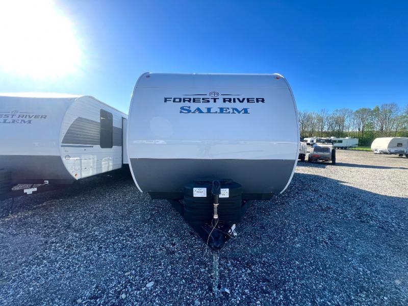 The Salem travel trailers are packed with hassle-free camping amenities! There are a variety of floorplans to choose from between three different regions. The heated and enclosed Accessibelly will help protect against the elements and debris during transport, and the exterior retro/metal redesign is sure to be eye-catching! There are stylish roller shades inside, along with updated backsplash, elegant curtain rods and curtains, plus many more interior comforts! Choose a Salem travel trailer today for quality and value!