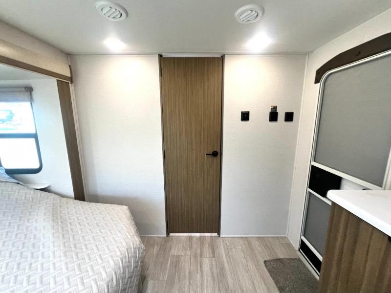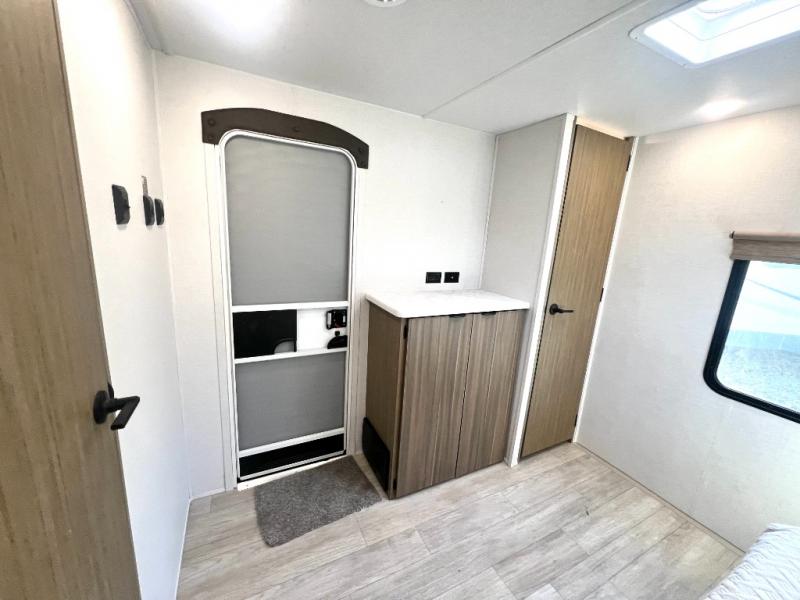 After you've had a long day of sightseeing and adventuring, you will certainly appreciate having this Salem travel trailer to come back to! If you aren't ready to stay indoors for the night, you can keep the party going outside under the 18' awning, and if you need any extra lawn chairs, you can grab them from the pass-through storage compartment. And, you don't have to stop enjoying a good fire just because you have to go inside because the interior fireplace will provide great ambiance. There are dual entry doors which will definitely come in handy when camping with a large group, and there is plenty of seating space on the Versa-Lounge and Vera Flex table.