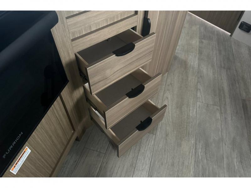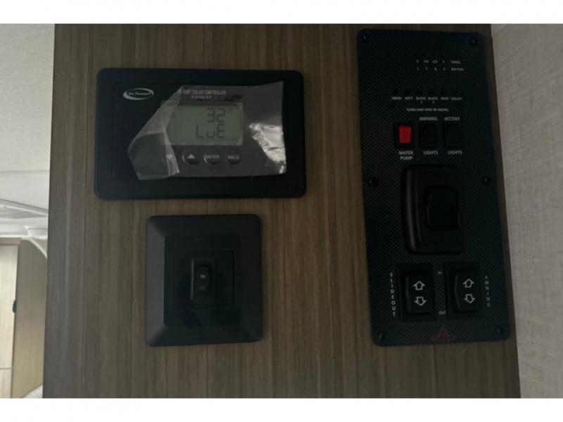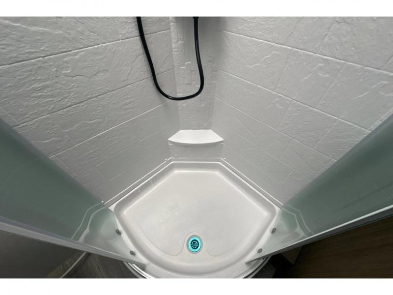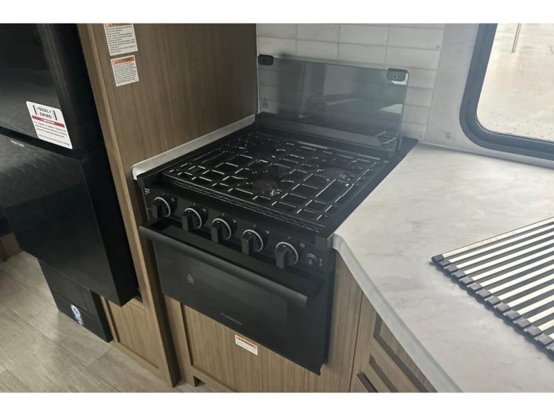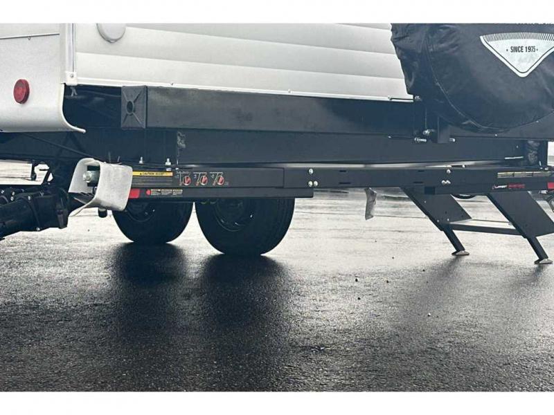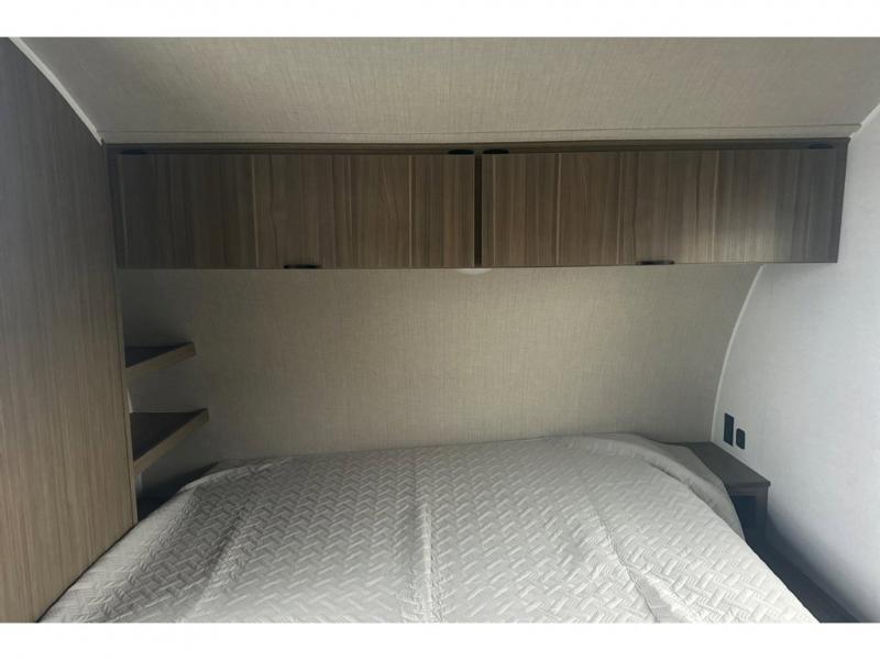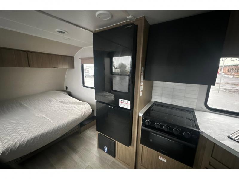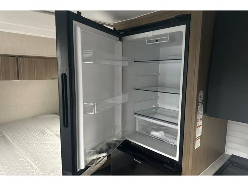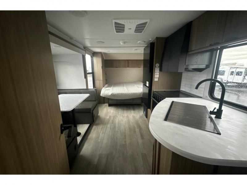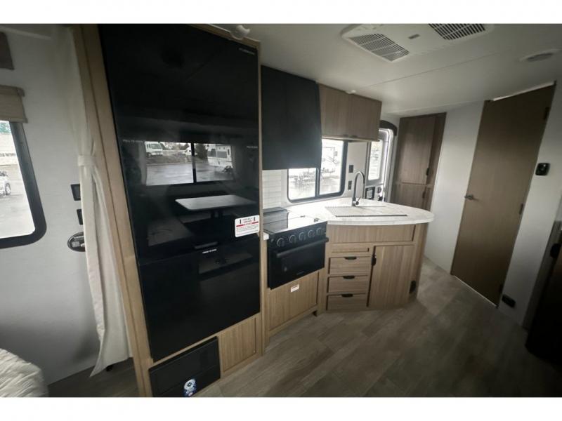 Pick your favorite campsite and load up this travel trailer for a fun weekend getaway! There is a wardrobe/pantry big enough to store your favorite snacks and a cooktop for you to create delicious home cooked meals. The U-shaped dinette slide is not only great for enjoying your meals at or playing card games, but also for transforming into an extra sleeping space. The rear corner bathroom has everything you will need to end each night feeling squeaky clean including a radius glass shower. The front custom king bed with Versa-Tilt welcomes you to enjoy a good night's rest, and the closets on either side of the bed will keep your clothes wrinkle-free!